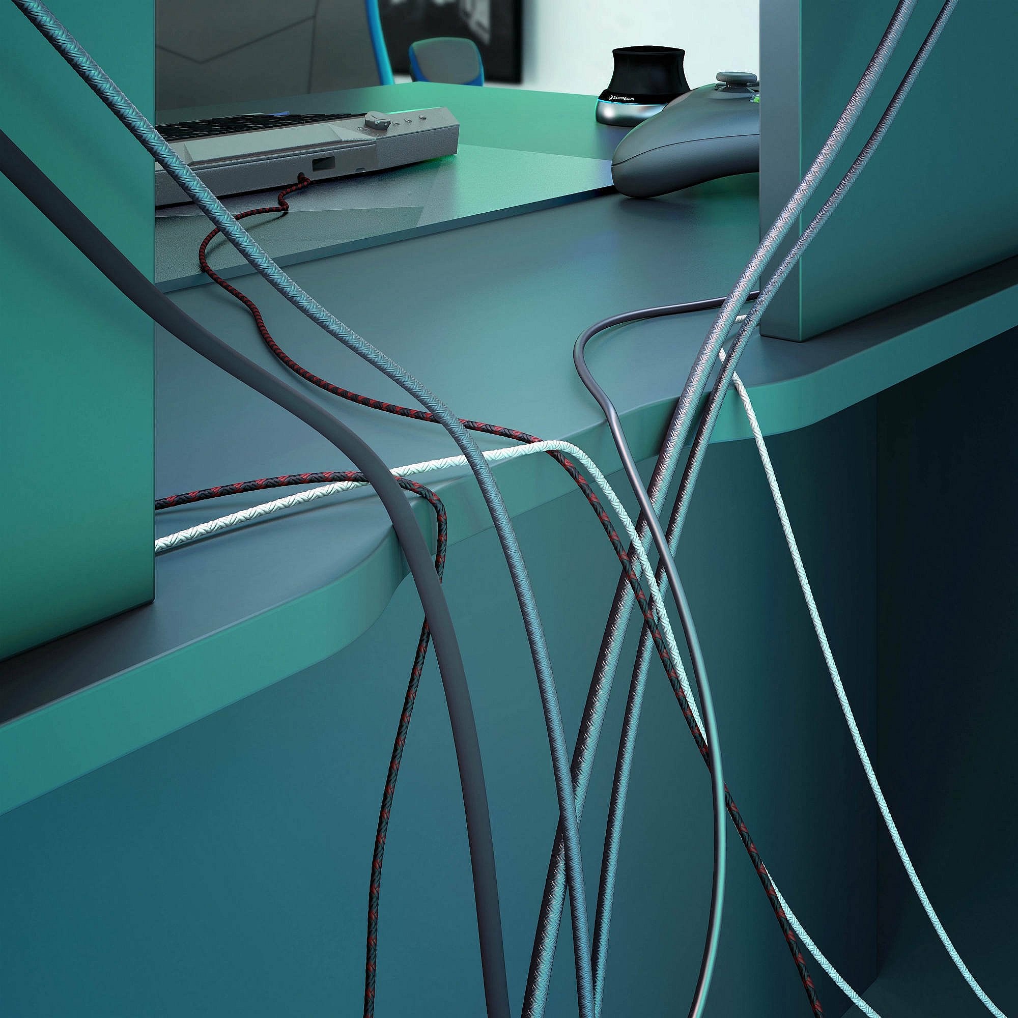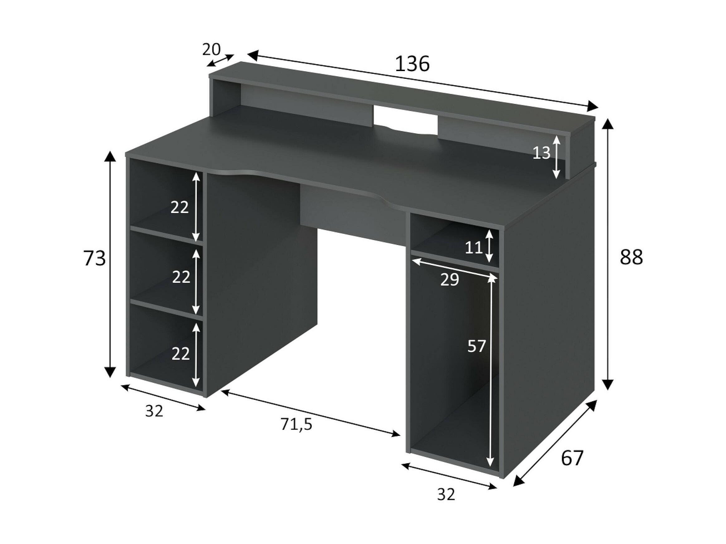 Mesa Dlucum, Mesa de jogos multifuncional moderna, Mesa de estudo para PC e porta CD, Mesa de estudo com prateleiras, 136x67h88 cm, Antracite