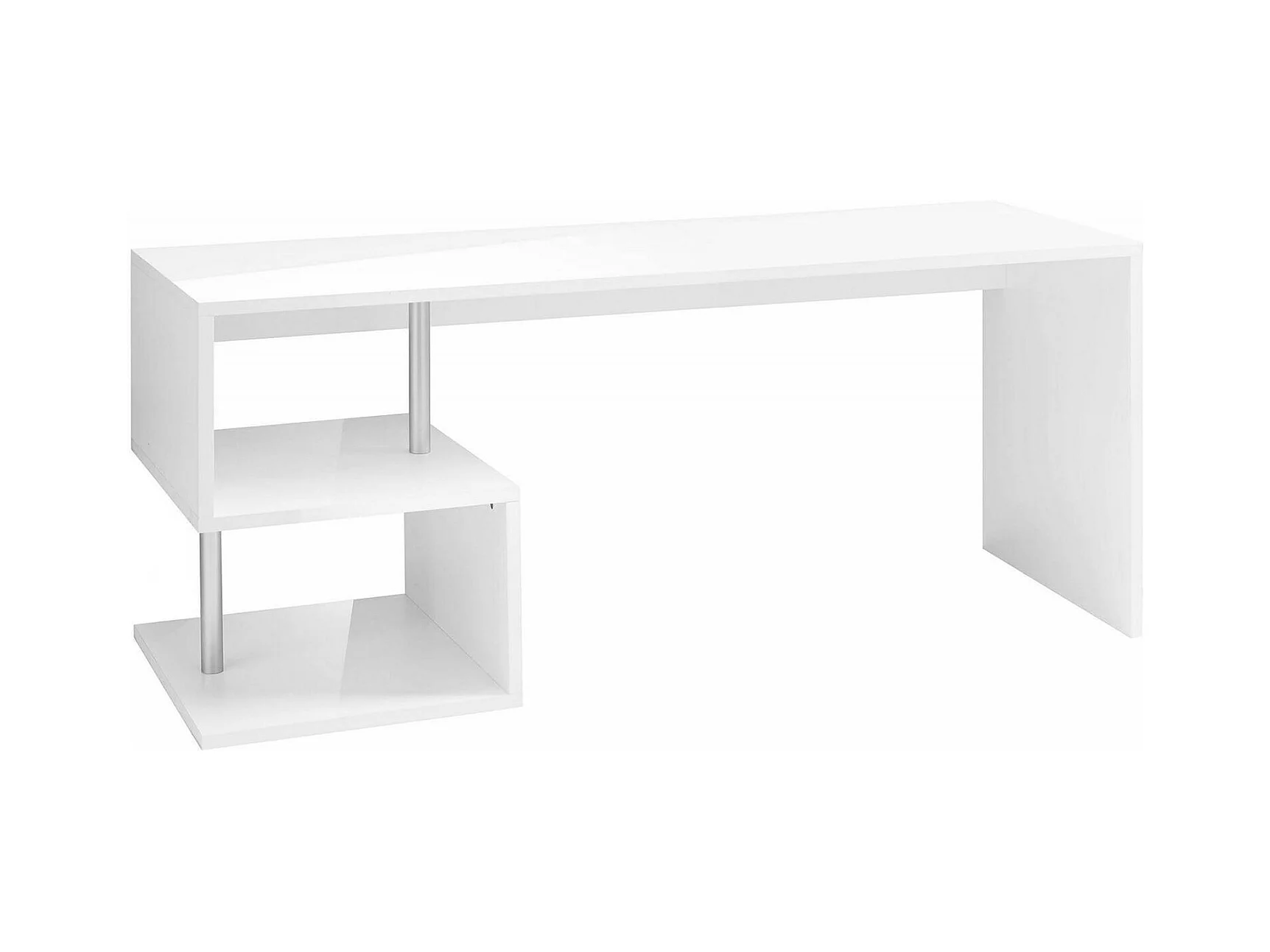 Mesa Dmarusi, Mesa linear para PC, Mesa de escritório multiuso, Mesa multiposições que economiza espaço, 100% Fabricado na Itália, 180x60h78 cm, Branco brilhante