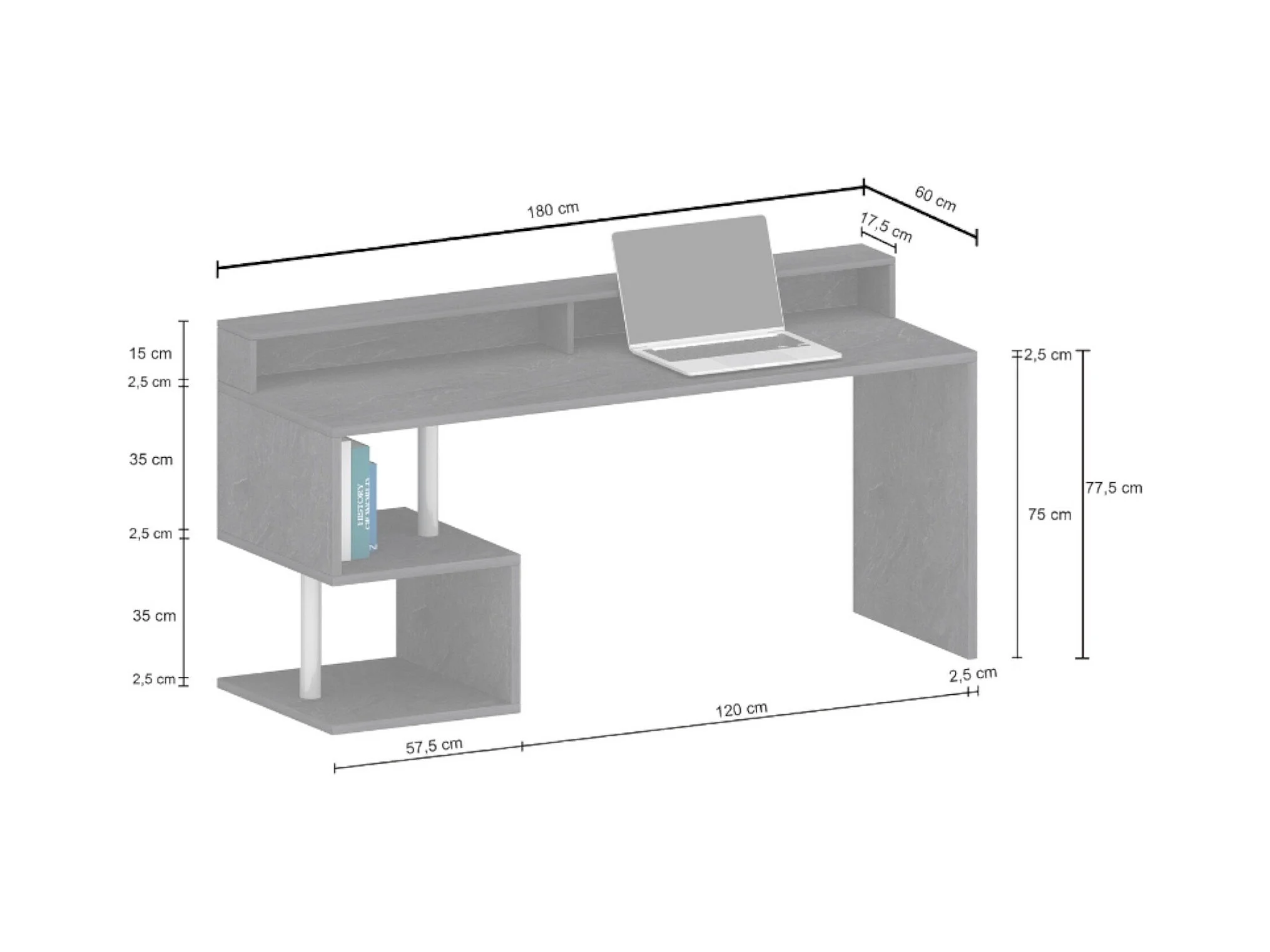 Secretária Dfalc, Secretária multiusos para escritório ou quarto, Mesa de estudo linear com prateleiras, 115x50h74 cm, Branco e Antracite