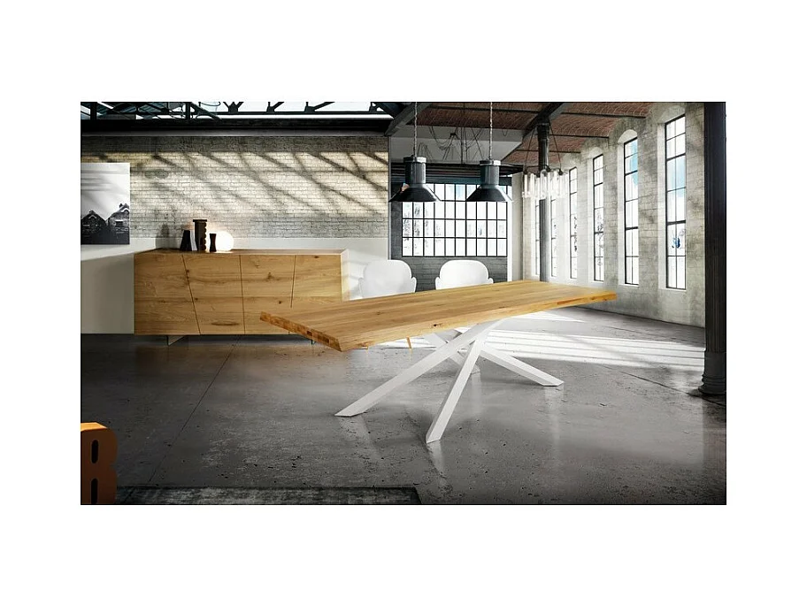 Mesa em carvalho natural maciço, pés em metal branco, 160x90 cm - BOLGHERI
