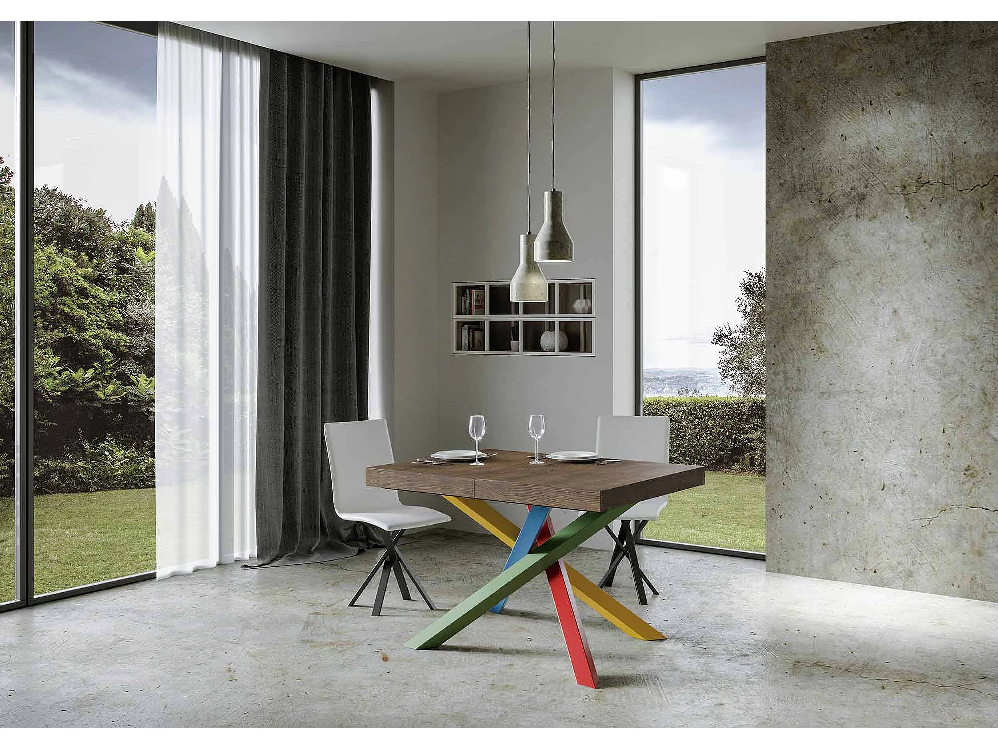 Mesa extensível 120/380x90 cm Volantis Premium nogueira pernas multicoloridas 4/B
