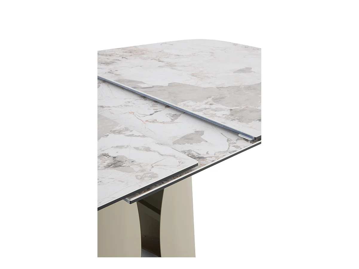 Mesa de jantar extensível em cerâmica "Equinoxe" - Branco mármore dourado para 6 a 10 pessoas