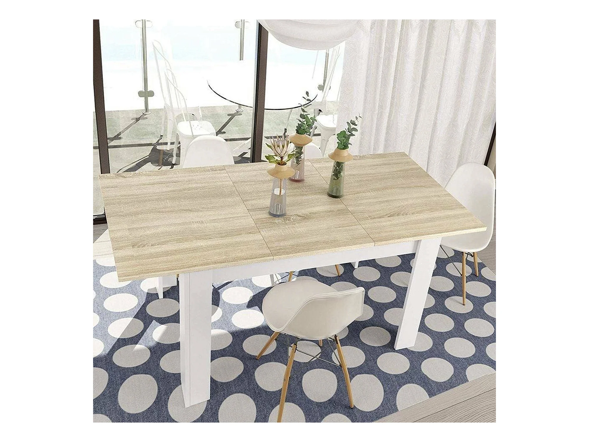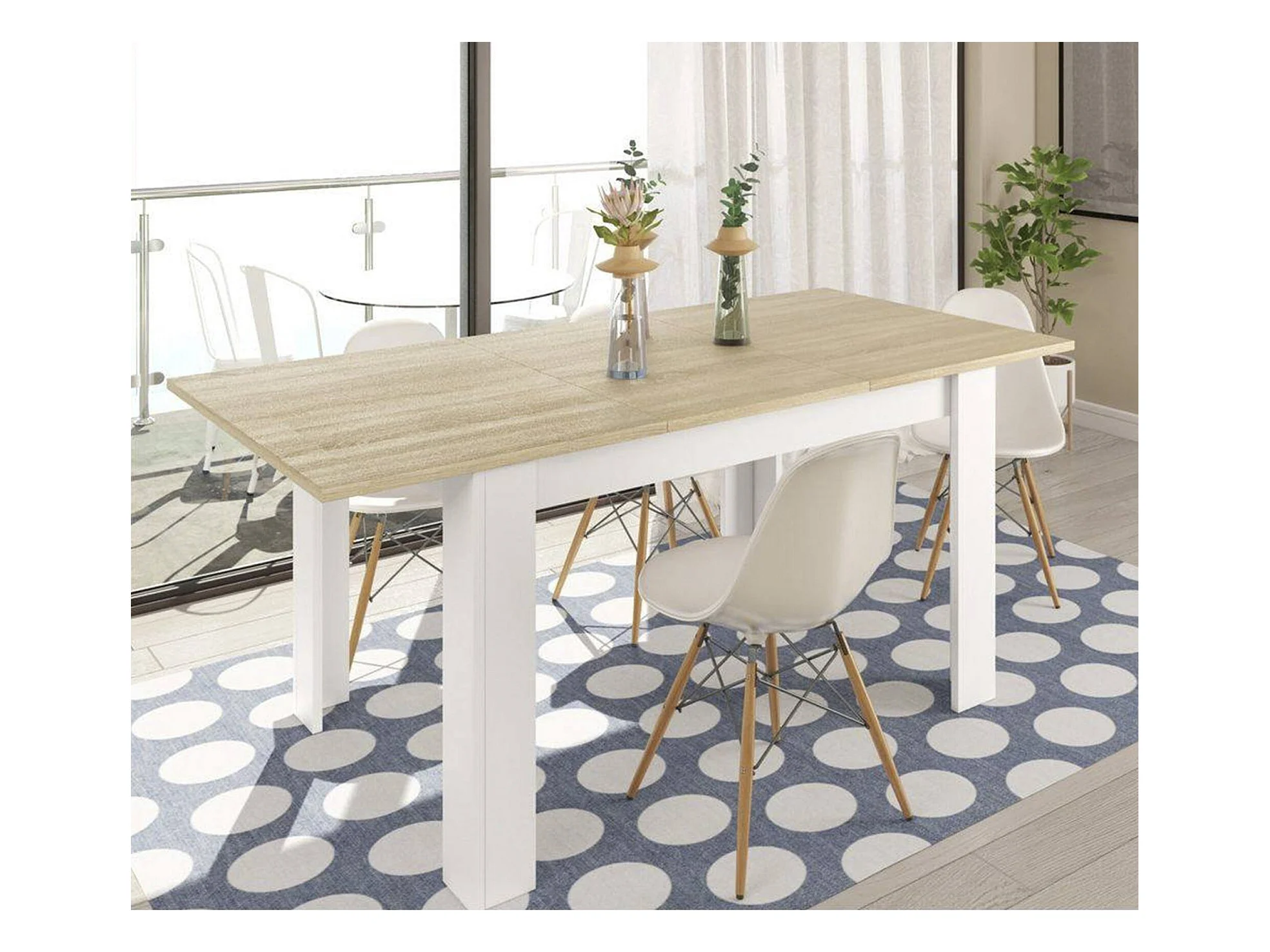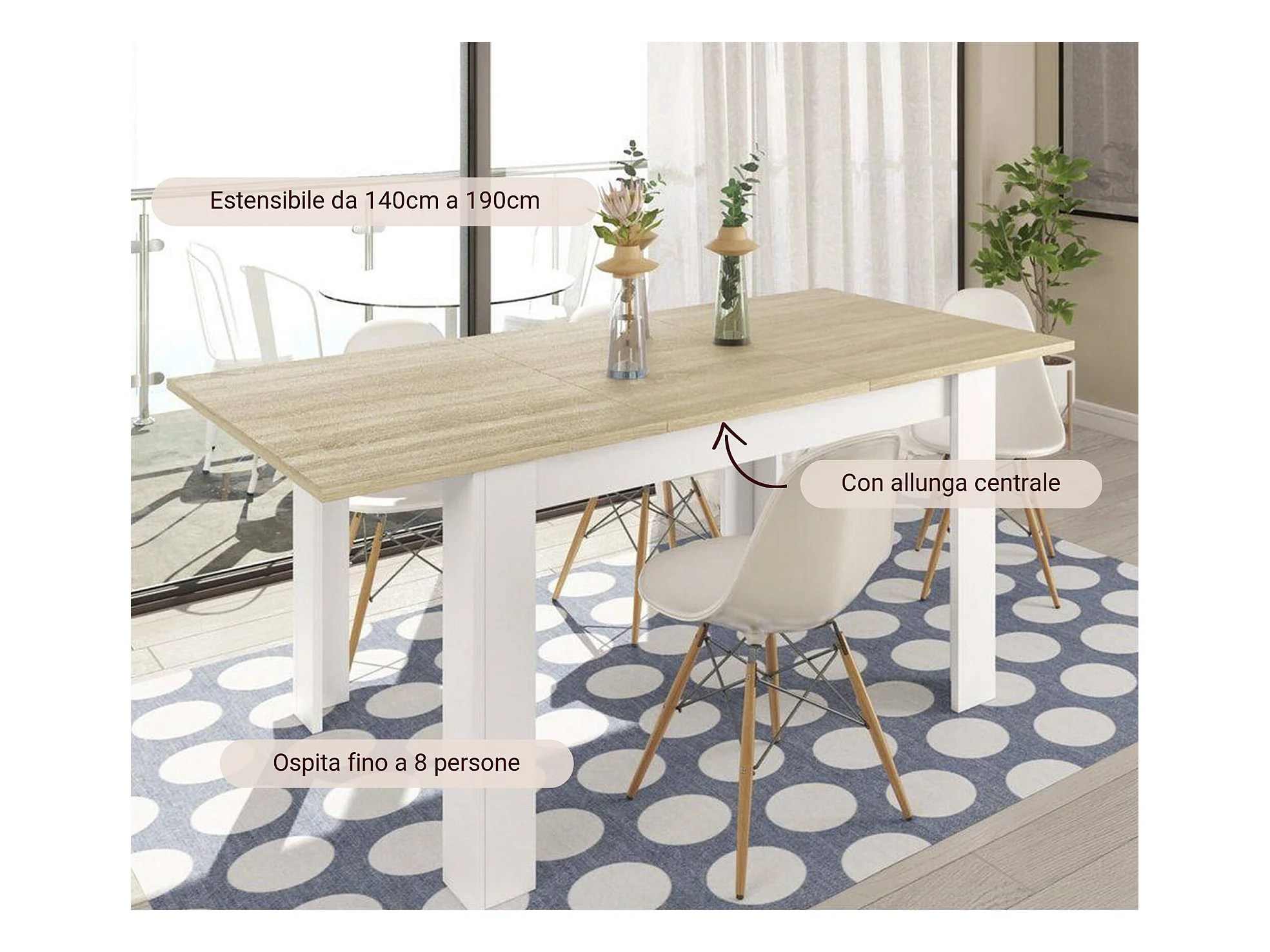 Mesa extensível Dalice, Consola extensível para sala de jantar, Mesa de cozinha aberta com extensão, 140/190x90h78 cm, Carvalho e Branco