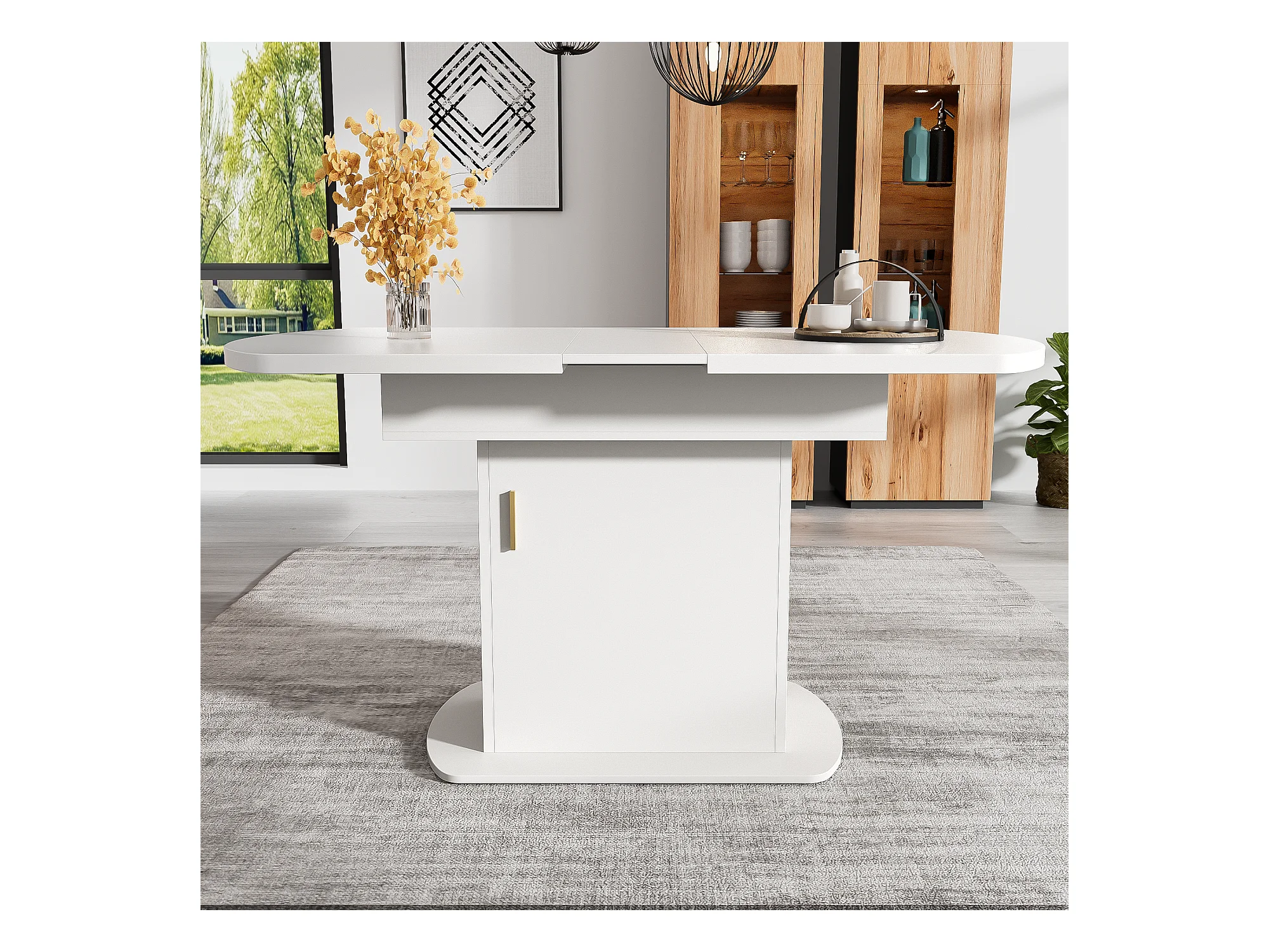 Mesa de jantar oval retrátil - com espaço de armazenamento e alça dourada - Branca
