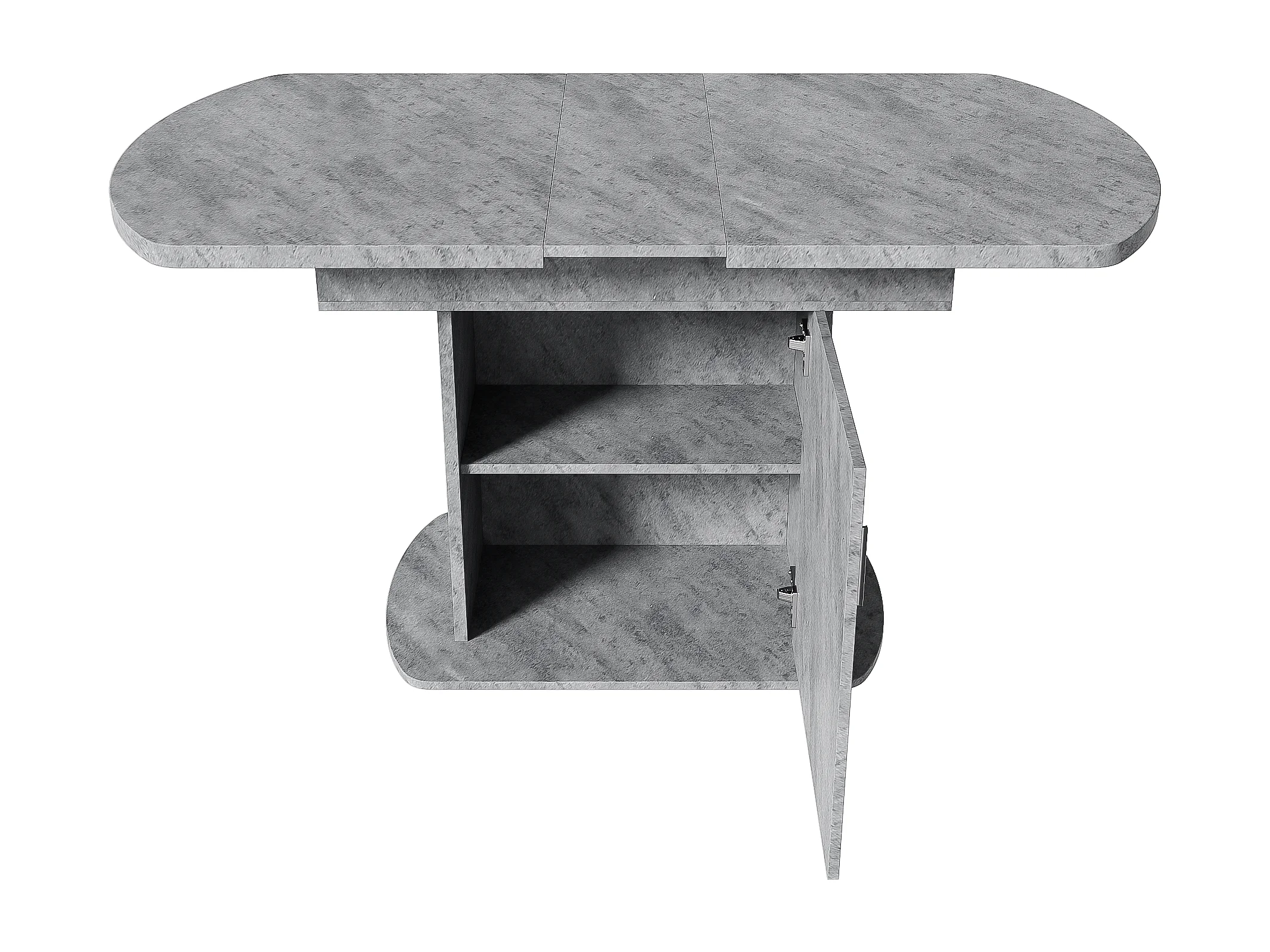 Mesa extensível oval metálica MDF C110-130 x L70 x A75 cm concreto prata armazenamento