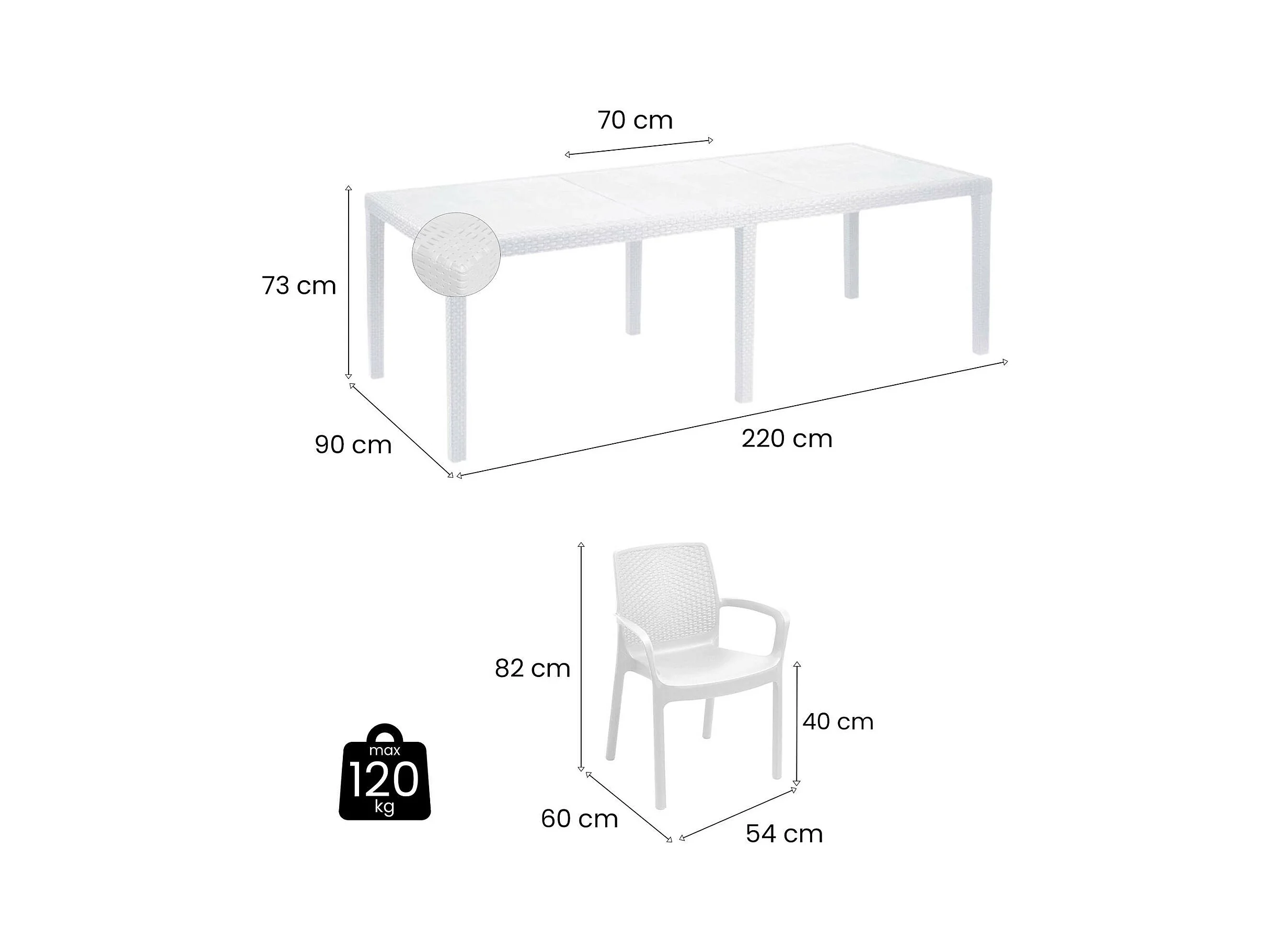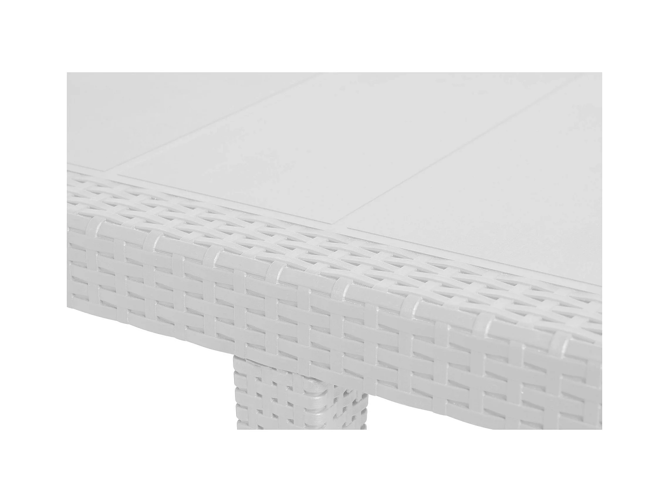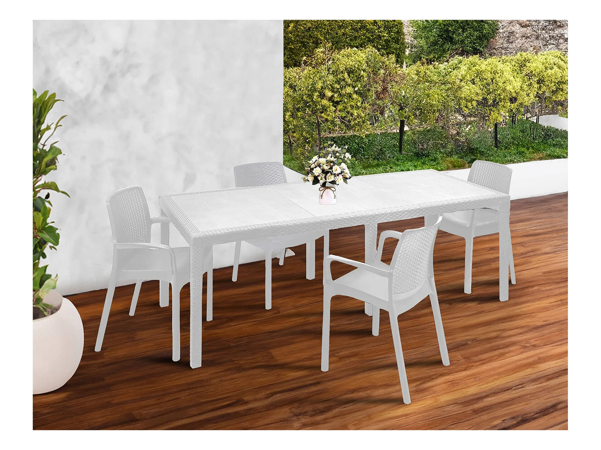 Mesa externa Dantonaz, Mesa de jantar extensível retangular com 4 cadeiras incluídas, Mesa e assentos de jardim com efeito Rattan, 100% Fabricado na Itália, Branco