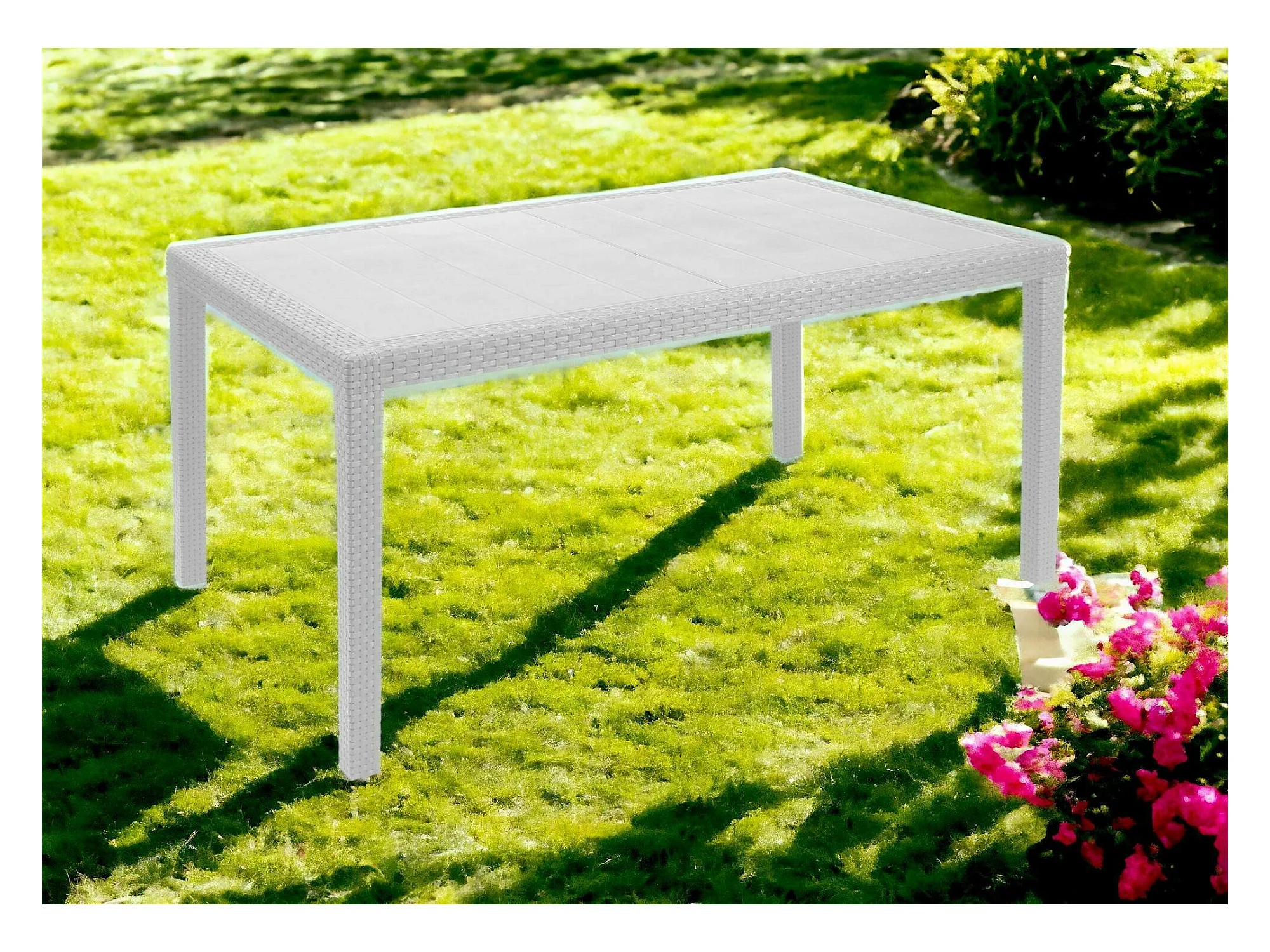 Mesa de jardim 150x90x72 cm plástico branco com aspeto de vime