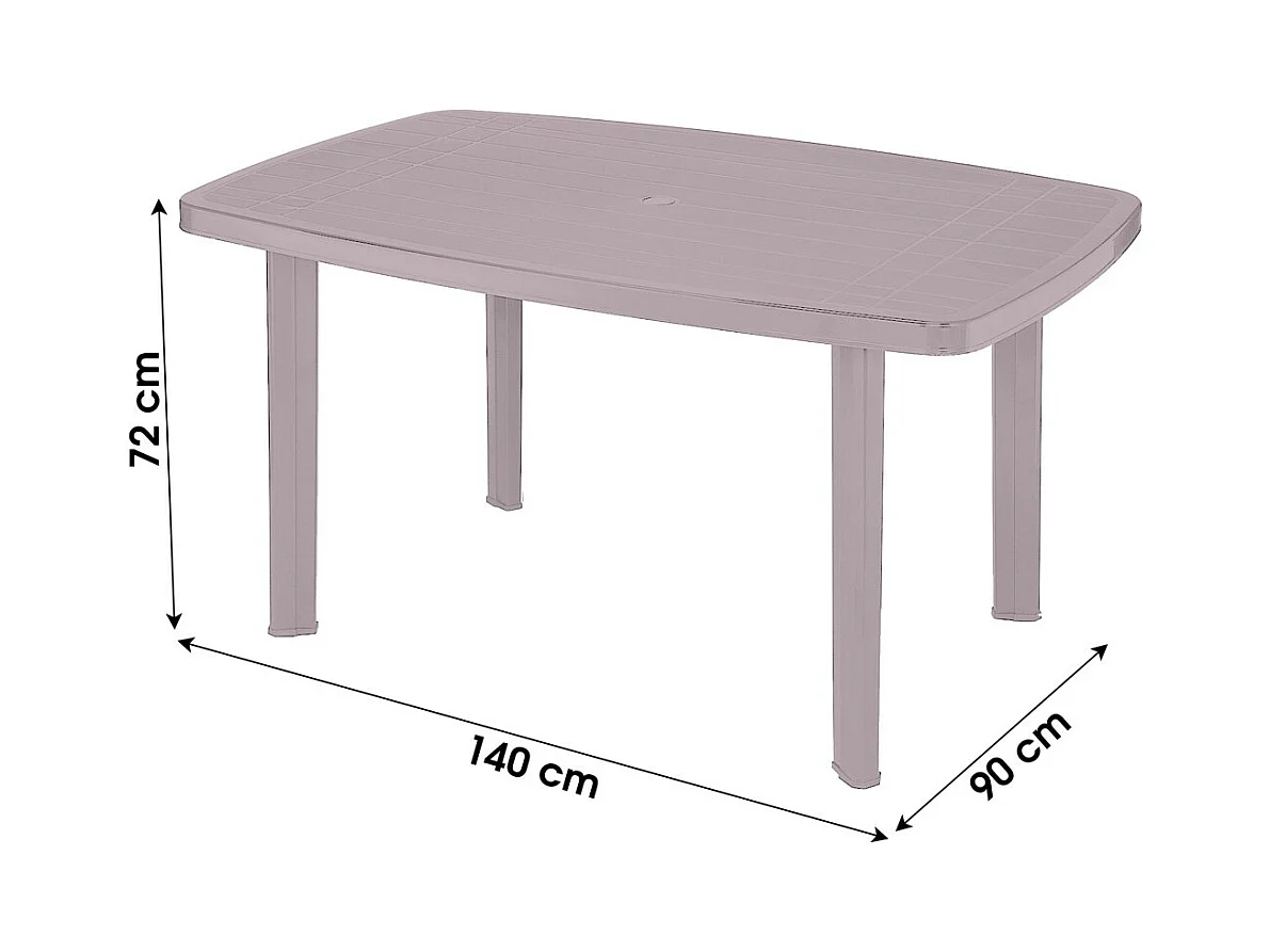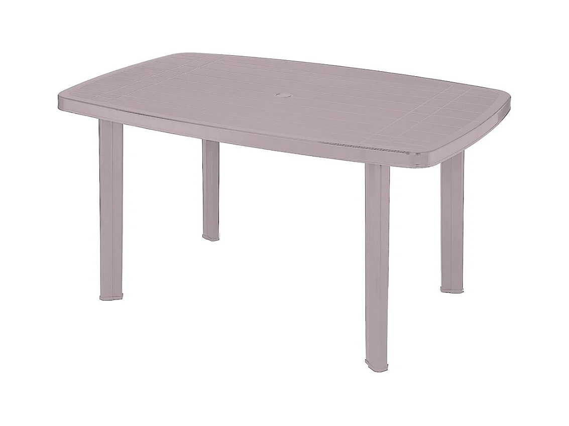 Mesa externa na cor taupe em PVC, dimensões 140x90cm.