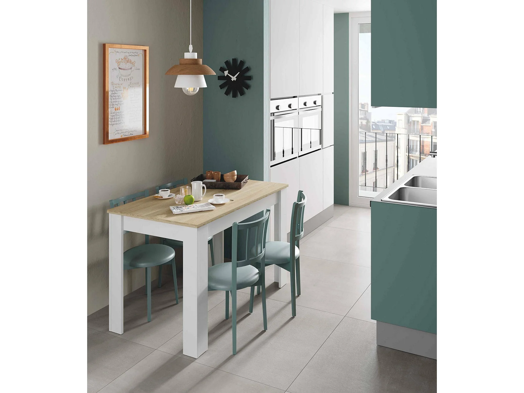 Mesa fixa Dghio, Mesa de sala de jantar, Mesa consola moderna para sala ou cozinha, 109x67x78 cm, Branco e Carvalho