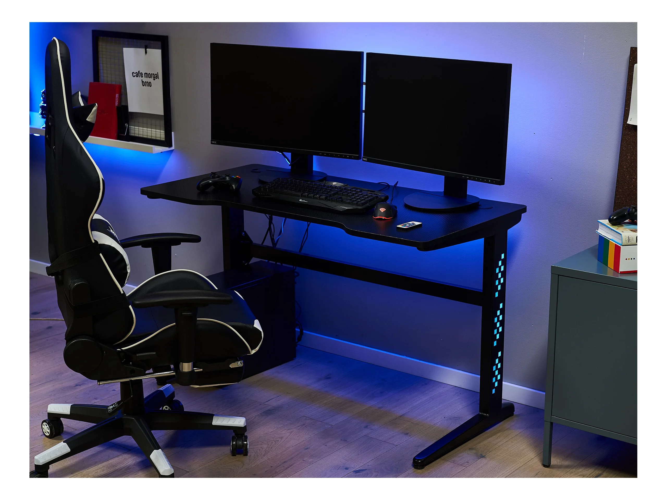 Spector - Mesa de gaming 120x60x76 cm com LED em MDF e metal preto