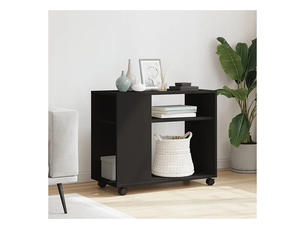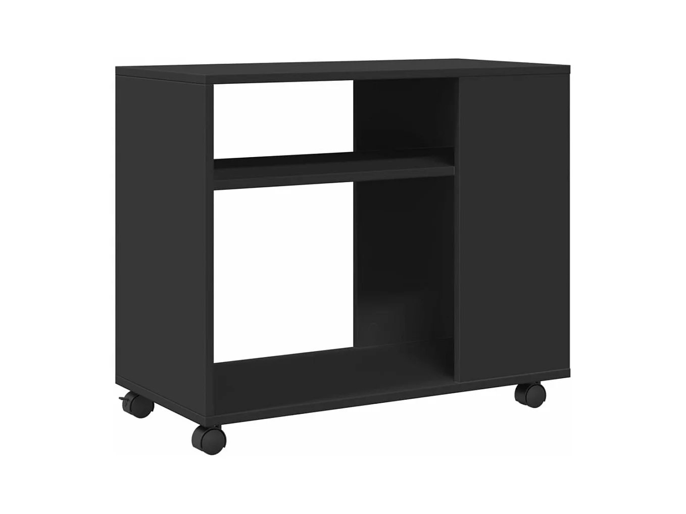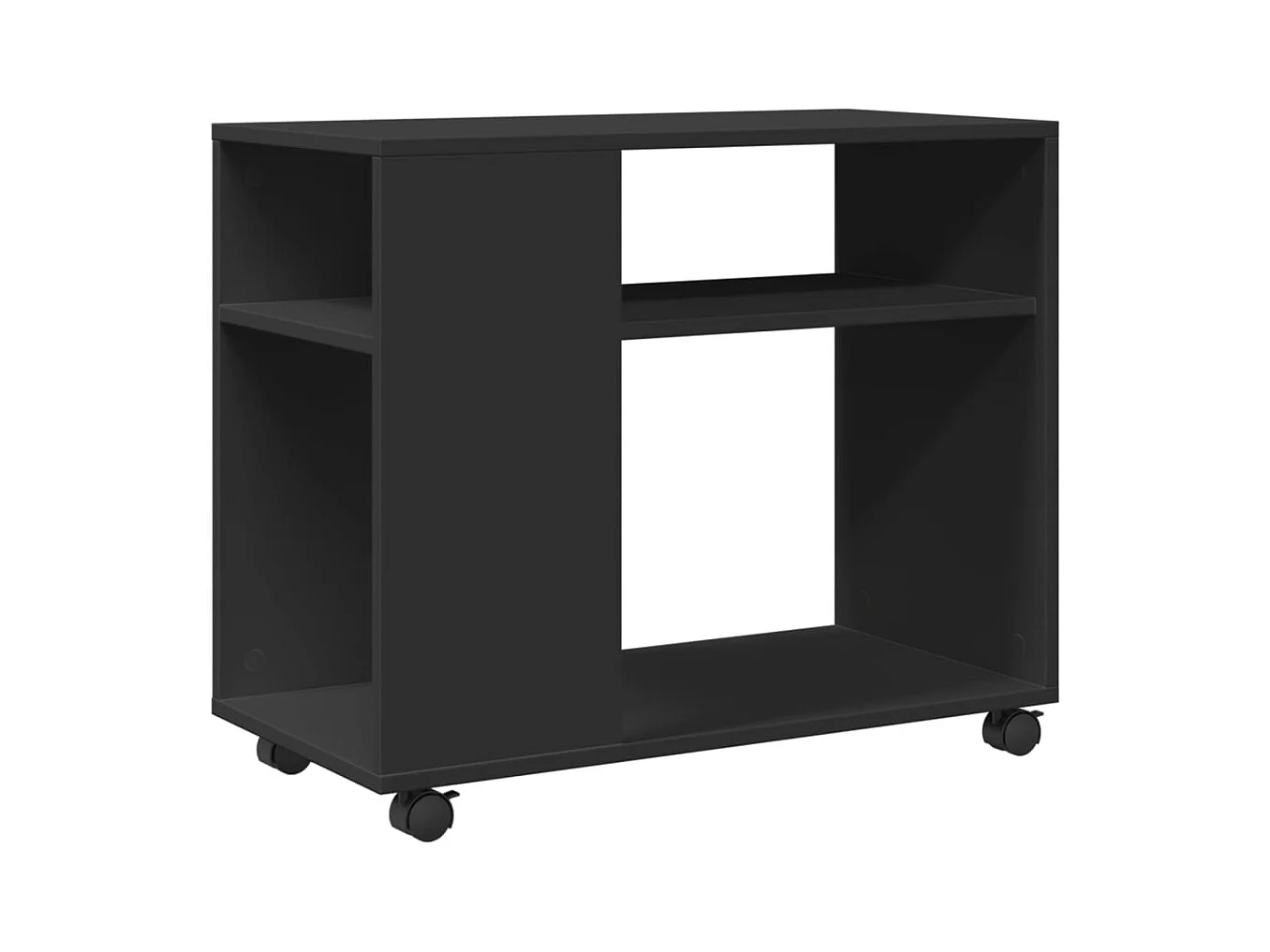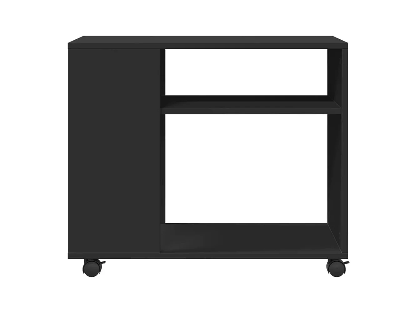 Mesa lateral com rodas preta 70x35x60 cm madeira engenharia