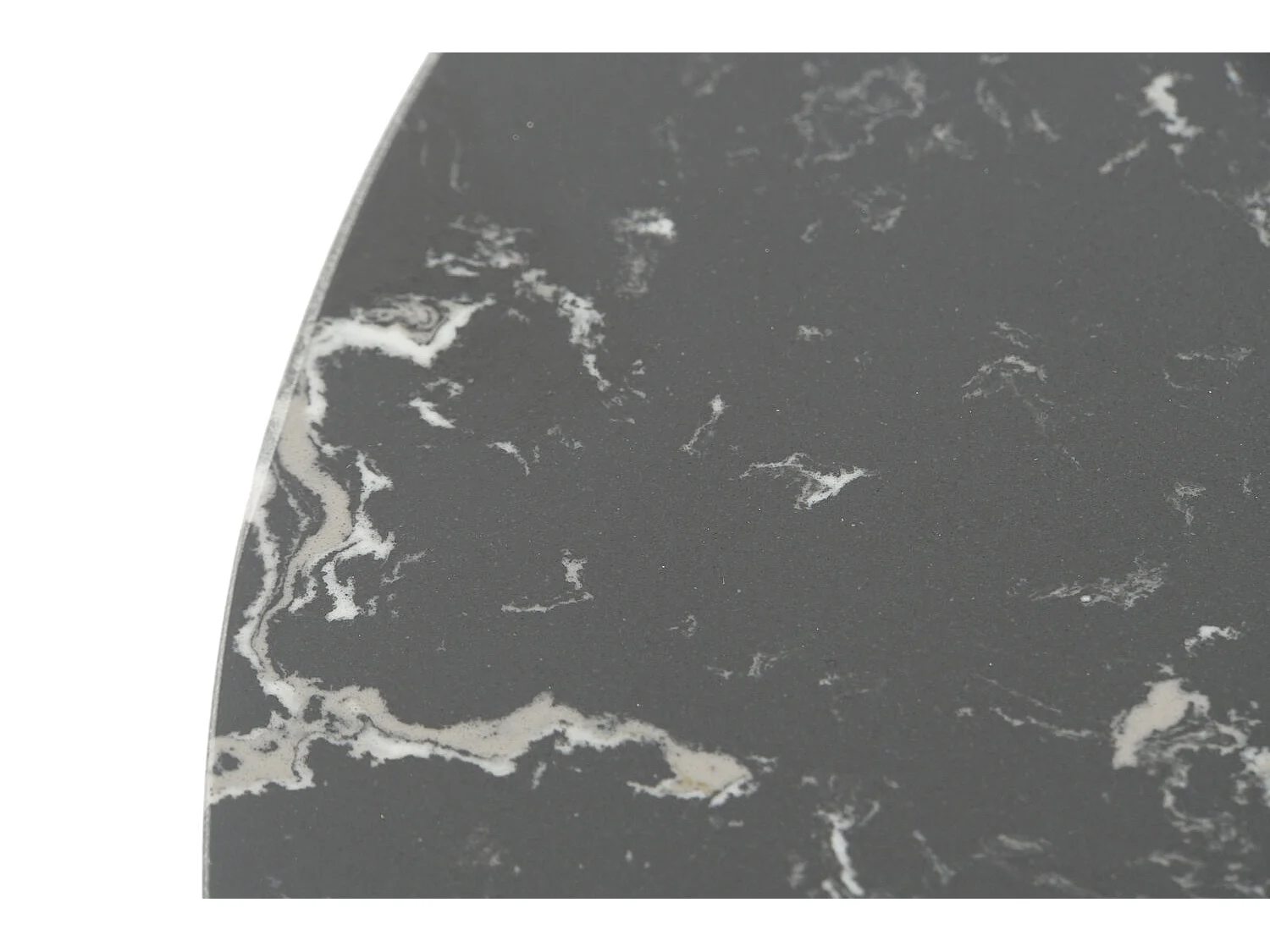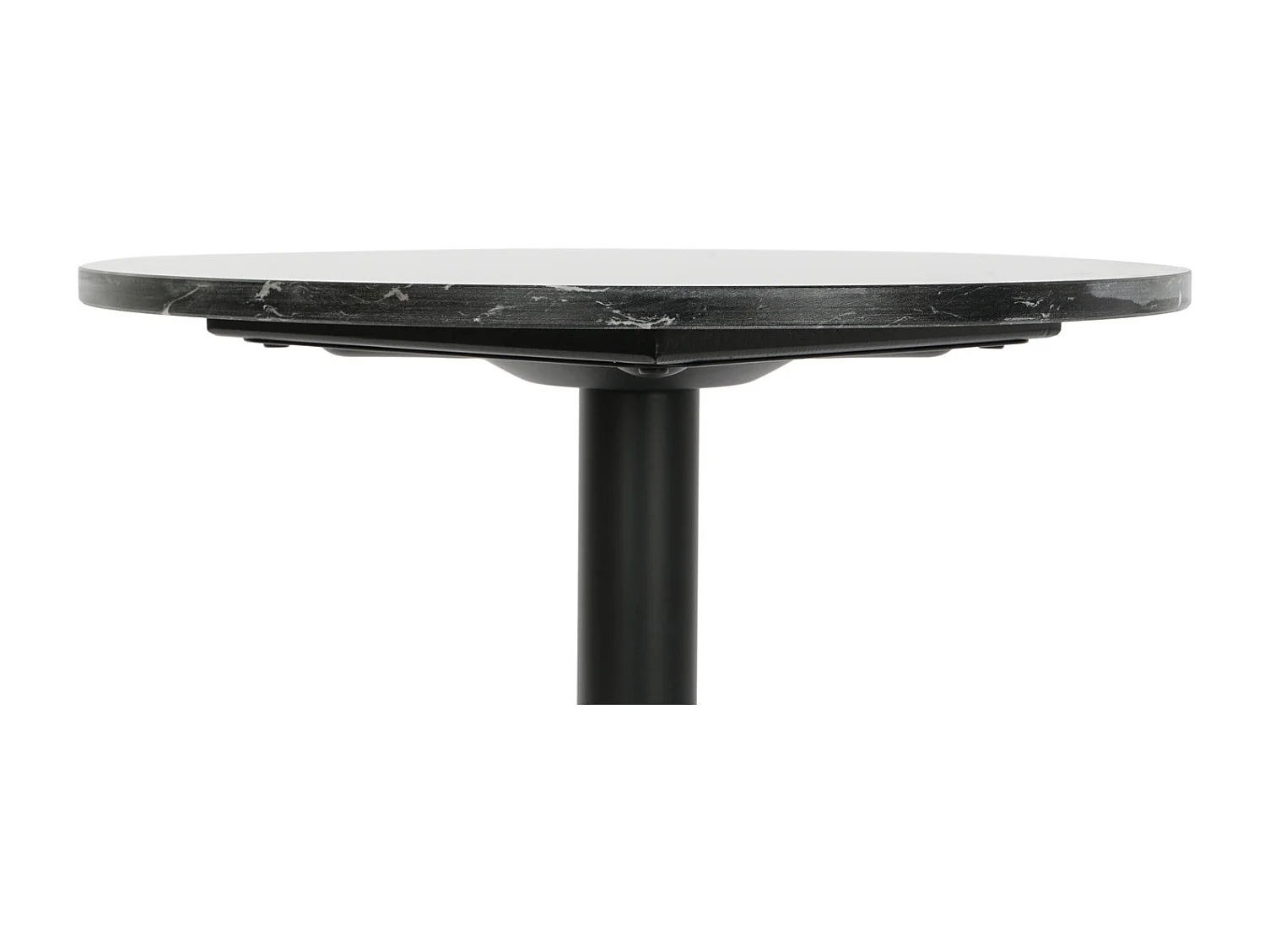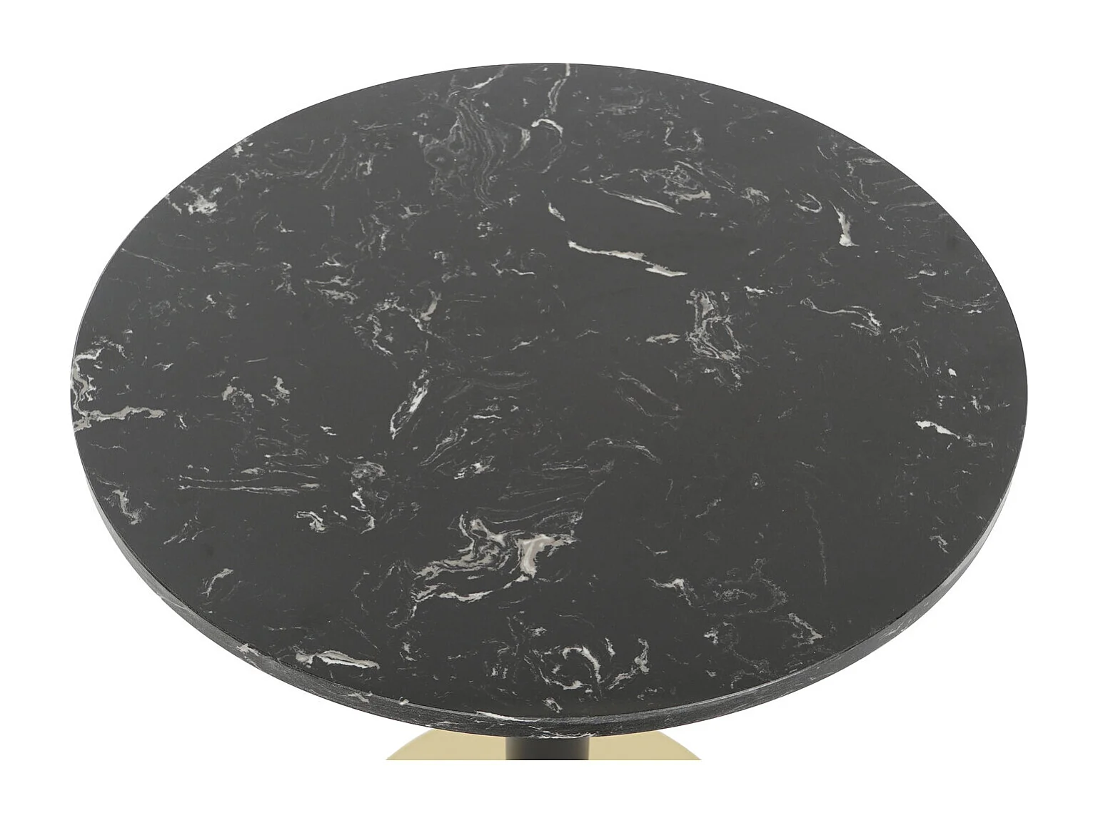 Mesa lateral de metal com tampo de mármore, 45x45x51 cm, preta.