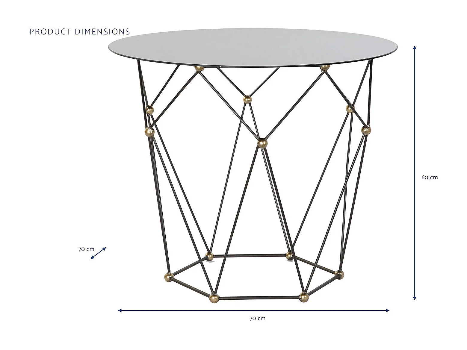 Mesa lateral de metal com vidro 70x70x60 preta