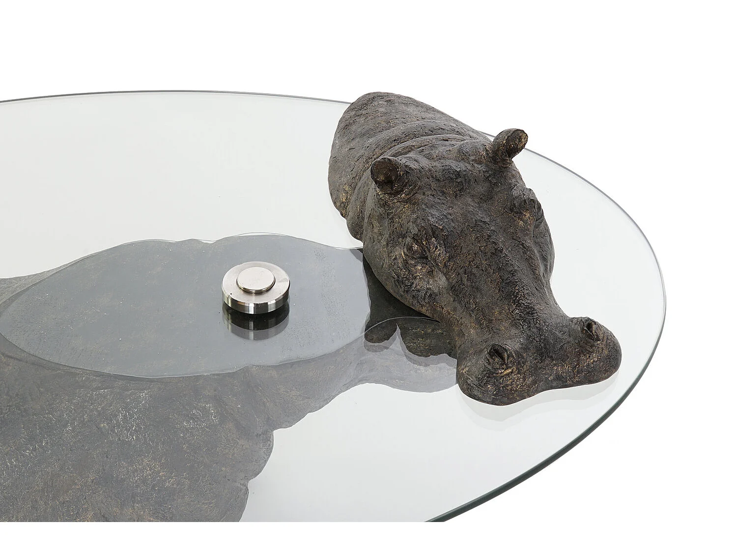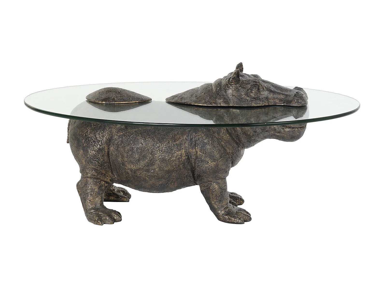 Mesa lateral de resina e vidro 80x50x37 hipopótamo