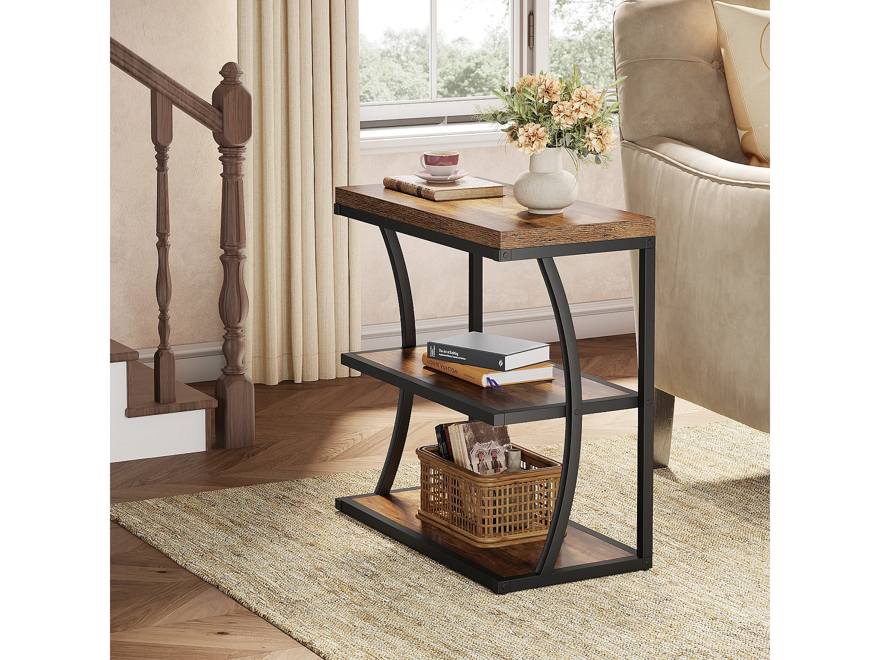 Mesa Lateral Pequena e Estreita, Mesa Decorativa de Metal no Estilo Rural para Sala de Estar, Quarto, Espaços Pequenos, Lado da Cama