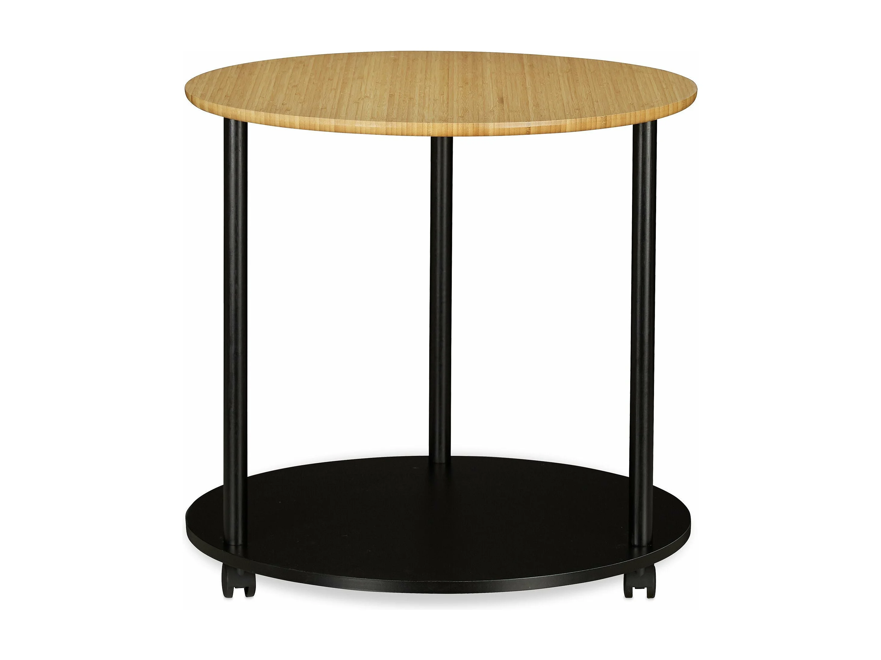 Mesa lateral redonda com rodízios de diâmetro 60 cm madeira e preto 13_0002658