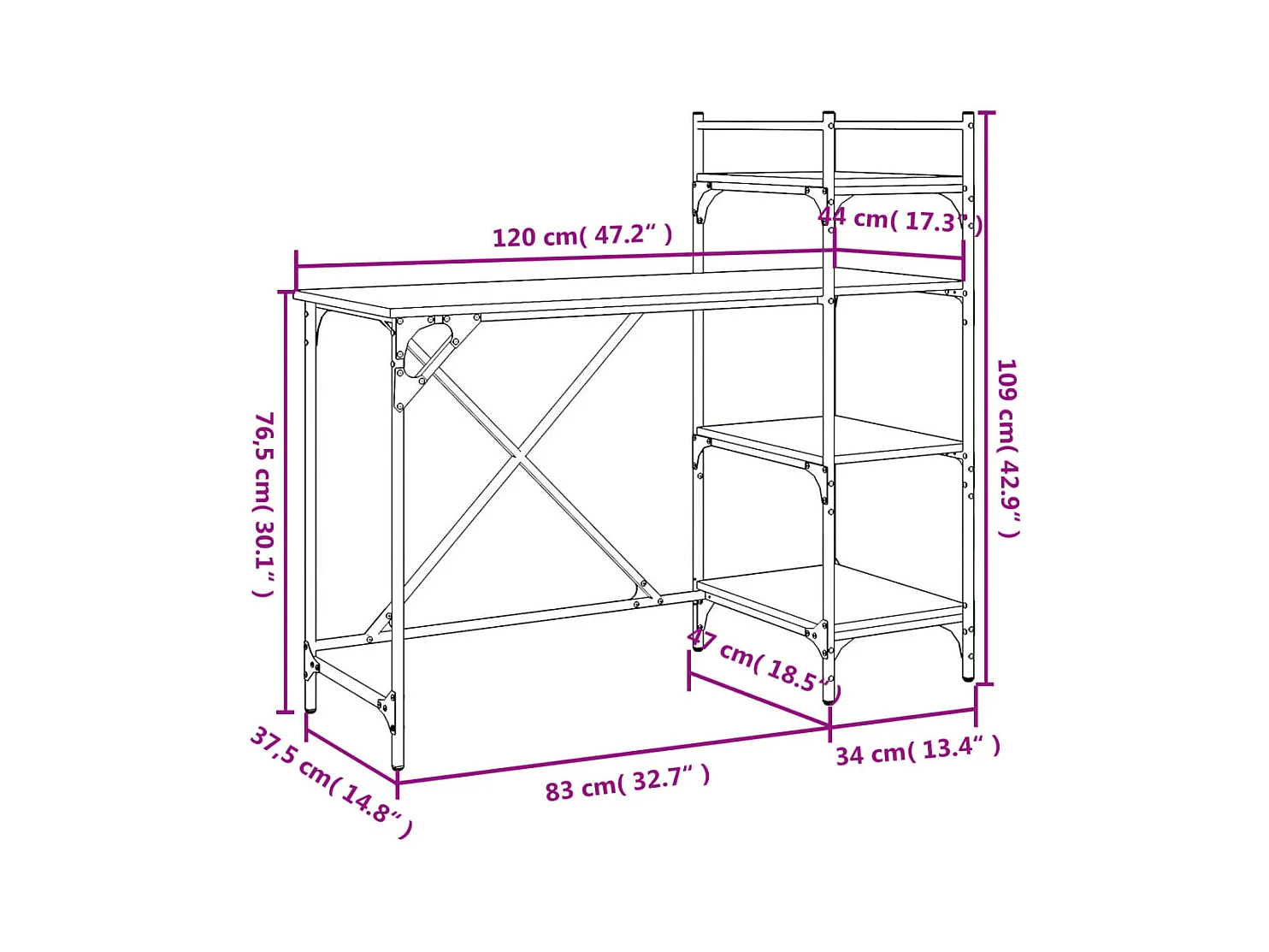 Mesa mesa estação de trabalho móveis de computador estudo de computador com prateleiras 120 x 47 x 109 cm preto 02_0023707