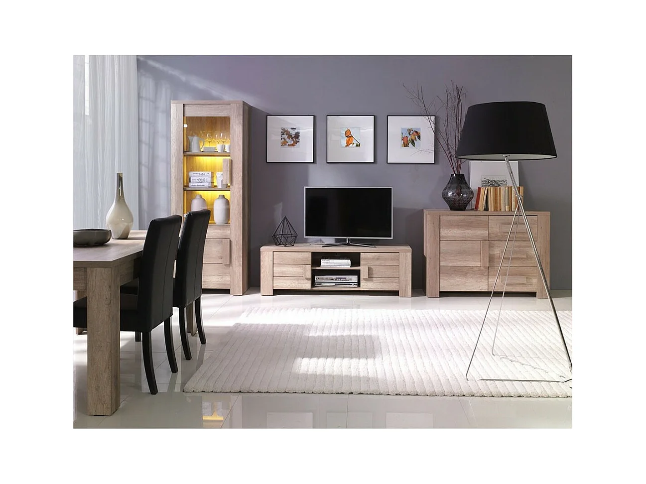 Mesa para sala de jantar FARRA. Dimensões 180 cm. Cor Oak canyon, carvalho claro.