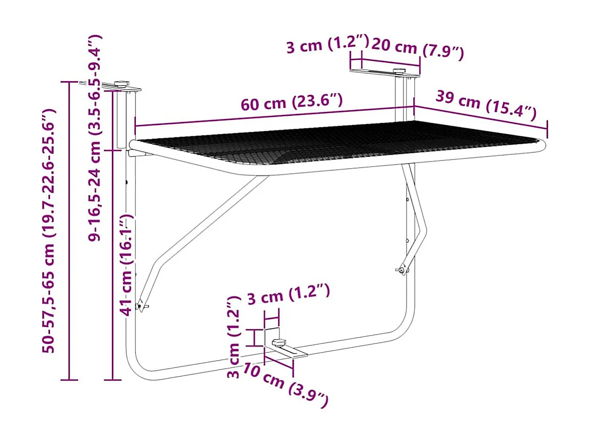 Mesa para varanda 60x40 cm aço dourado PT763800