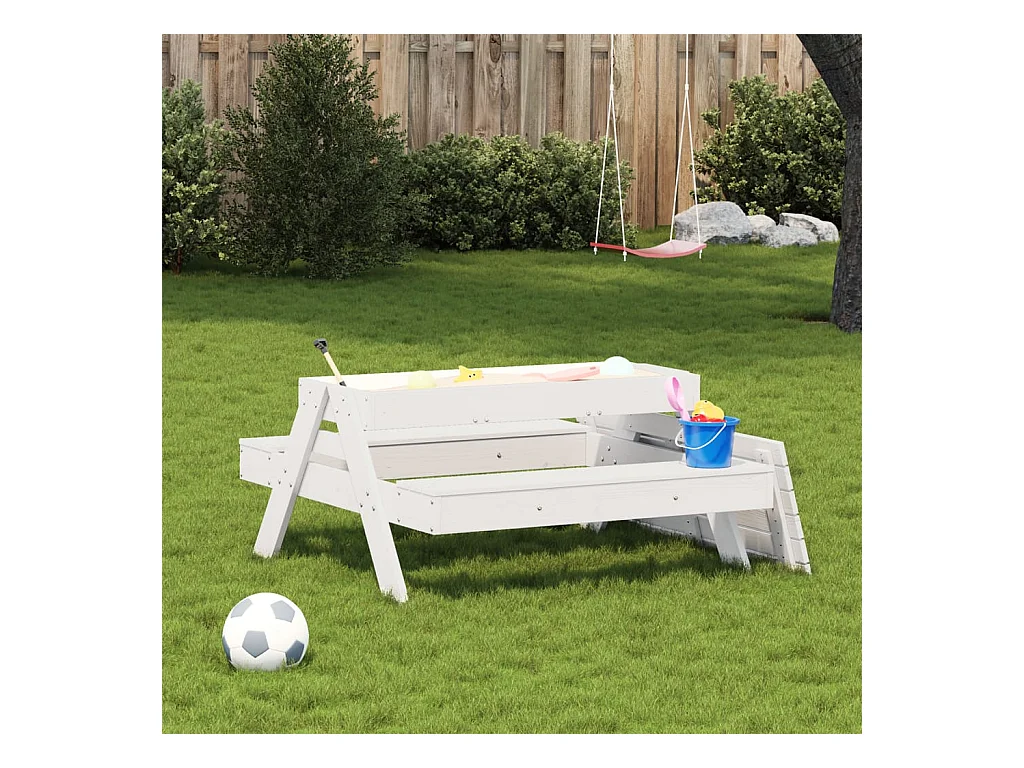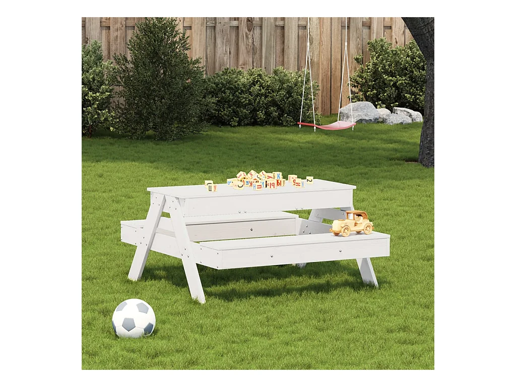 Mesa piquenique c/ caixa de areia infantil pinho maciço branco PT596690