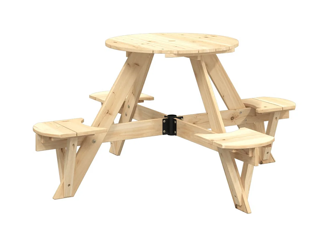 Mesa piquenique redonda p/ 4 crianças madeira de abeto maciça