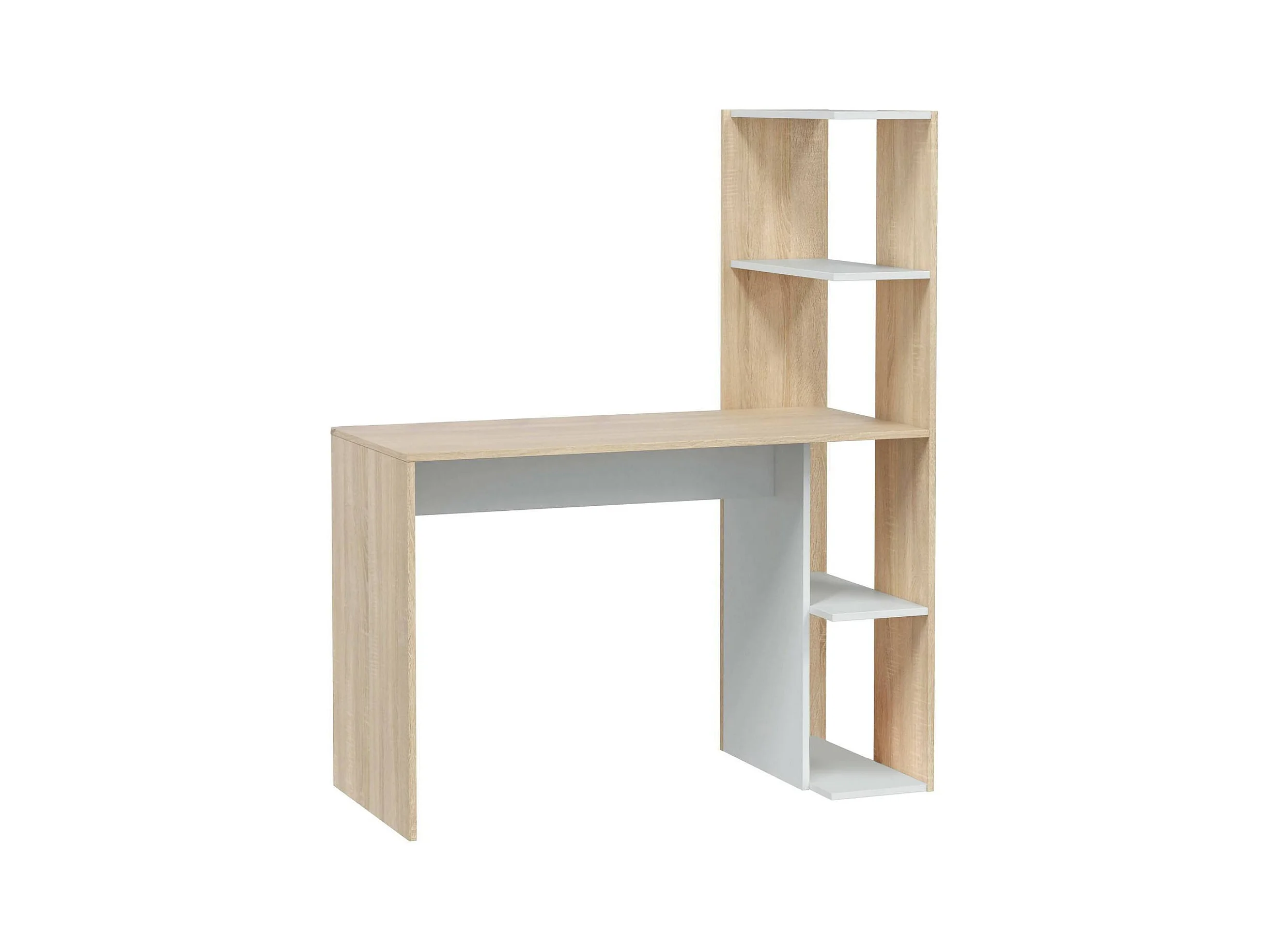 Mesa Pittston, mesa linear com estante, mesa de escritório multifuncional que economiza espaço, 110x52h136 cm, branco e carvalho
