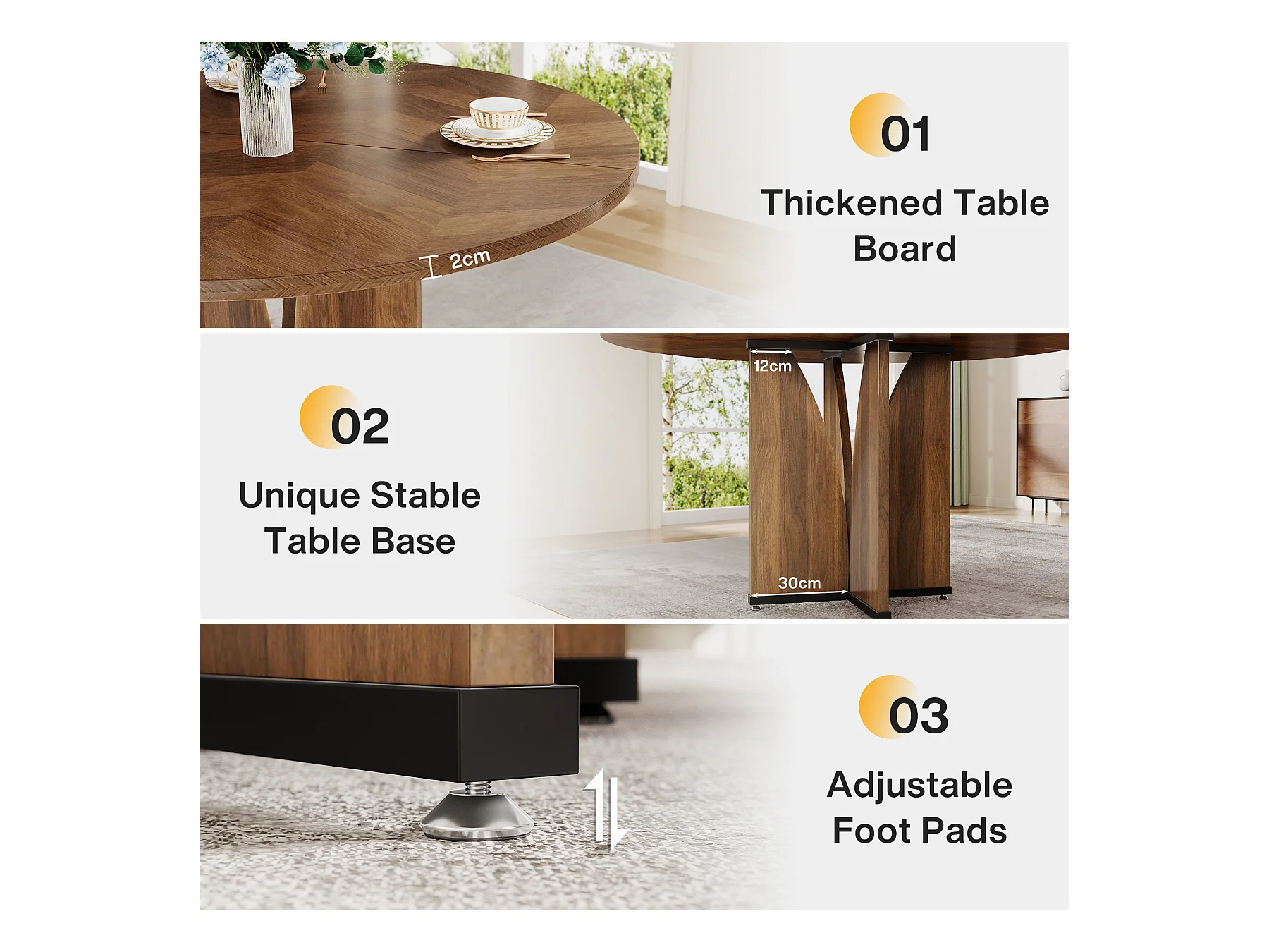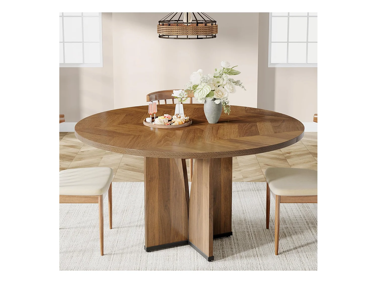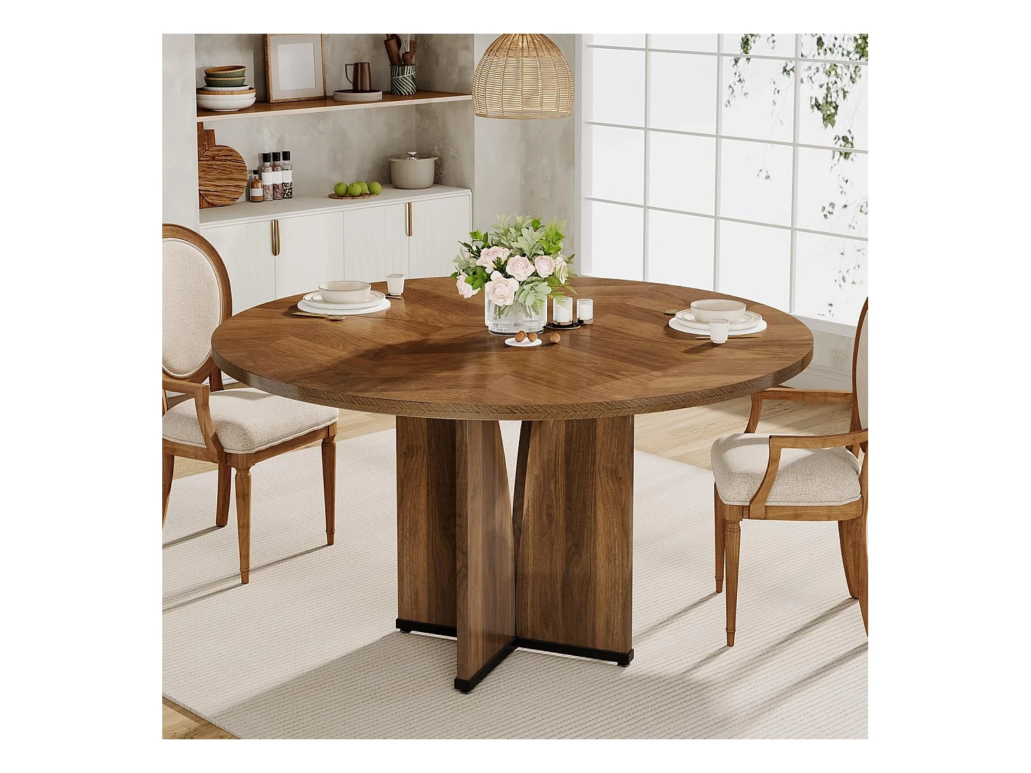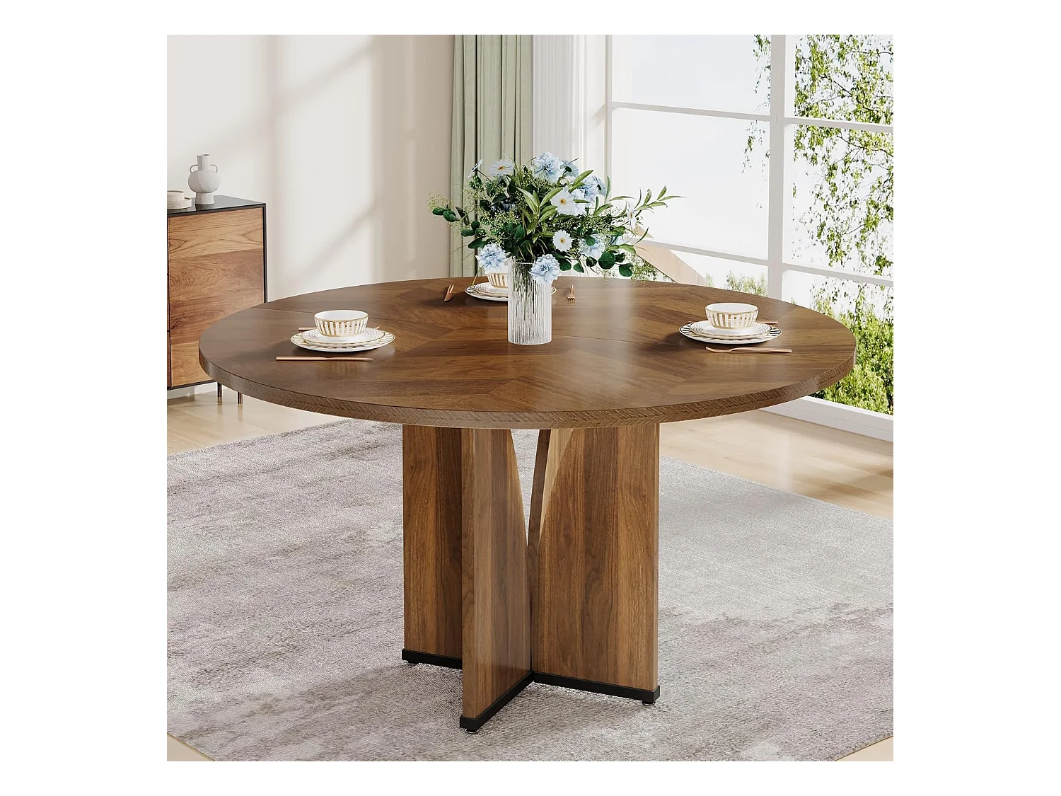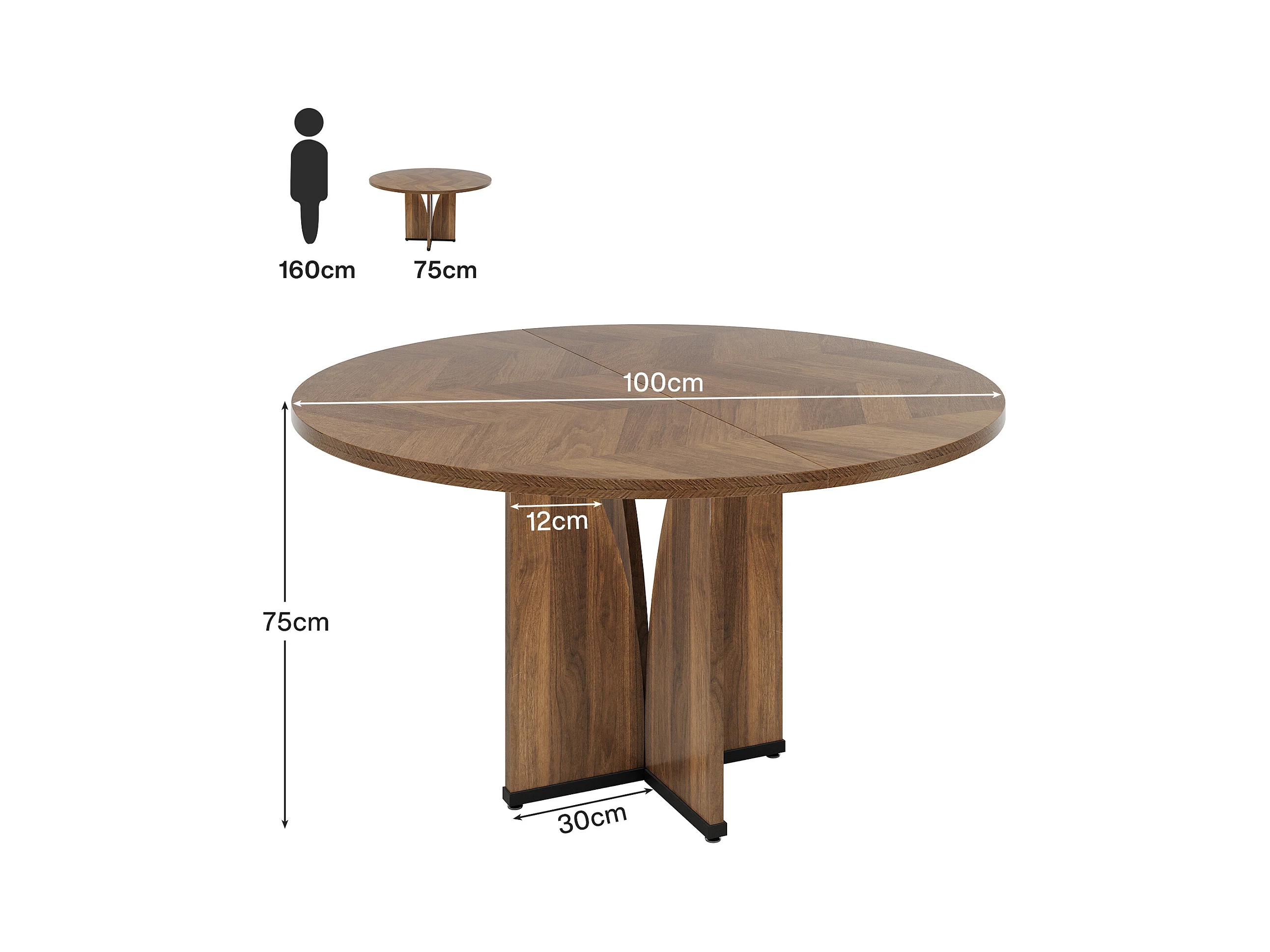Mesa redonda de jantar em madeira de 100 cm para 4 pessoas