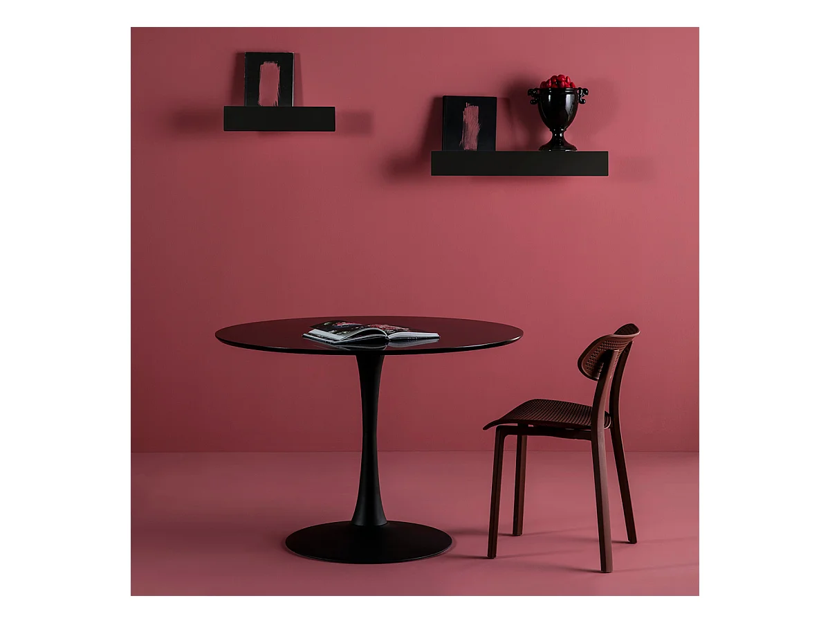 Mesa redonda em madeira e metal preto
