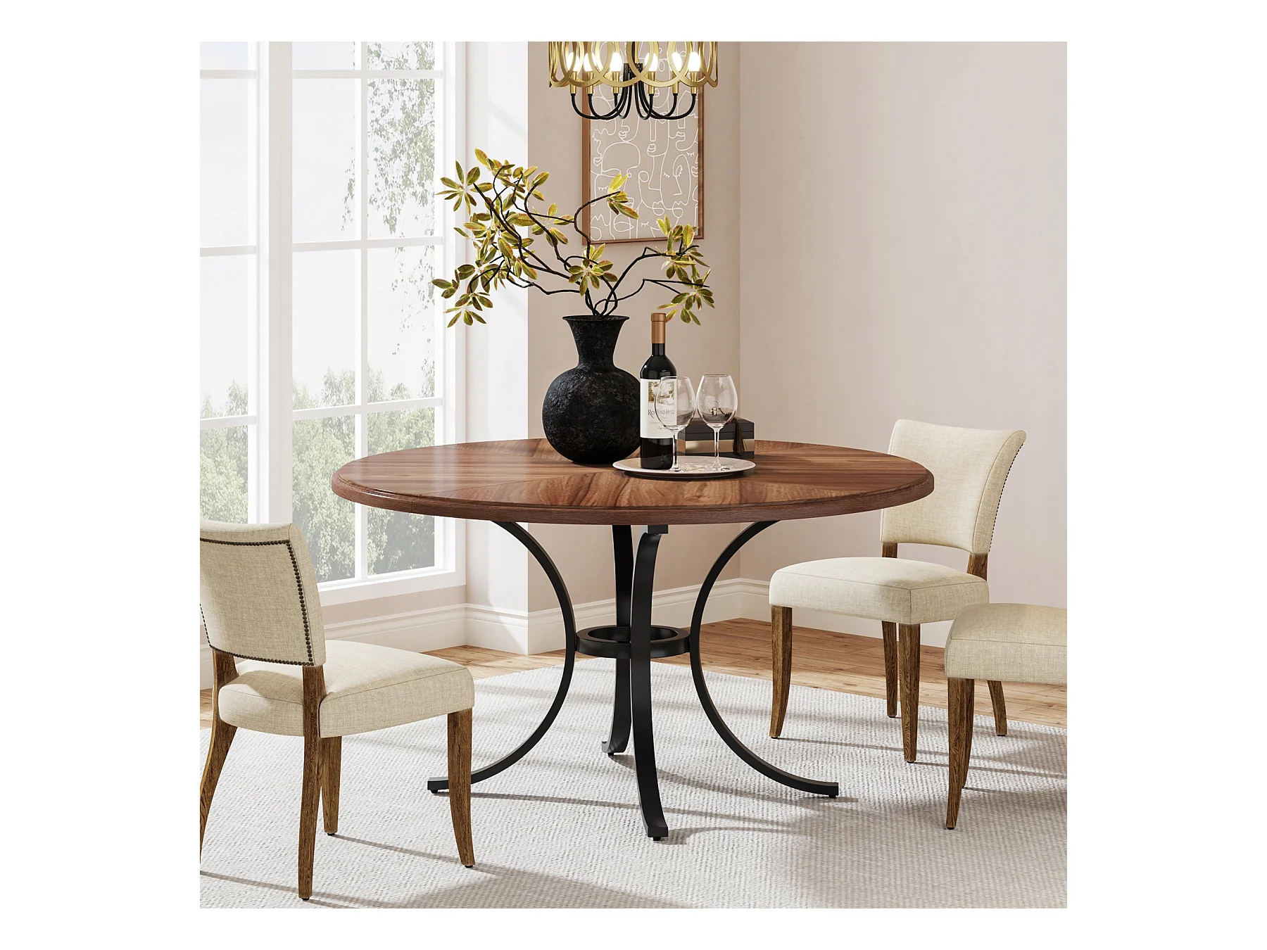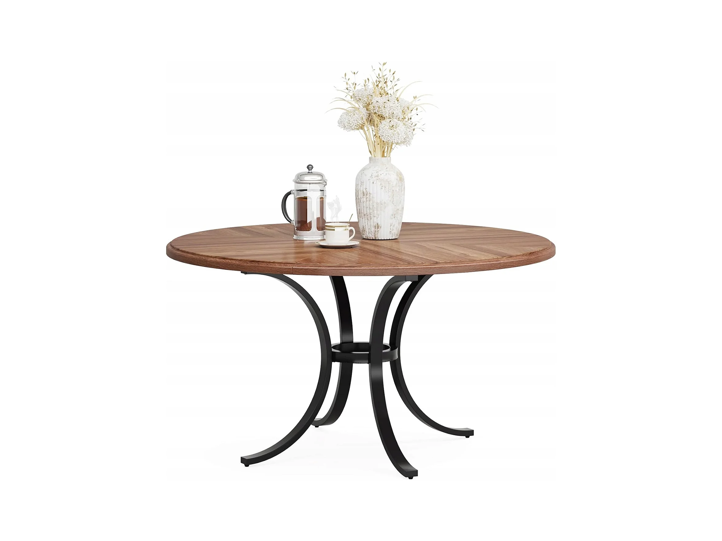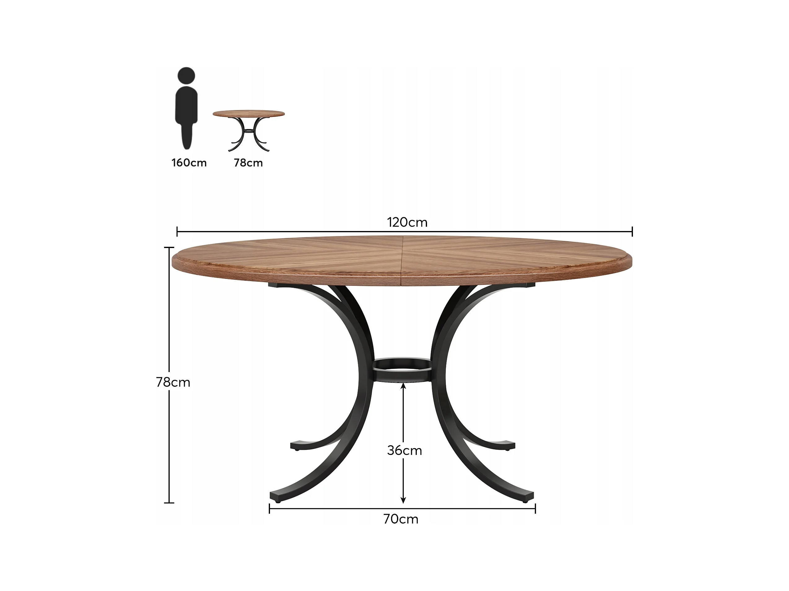 Mesa redonda para jantar para 4 a 6 pessoas - 120 cm - Mesa de cozinha redonda moderna para sala de jantar, sala de estar - Castanho e preto