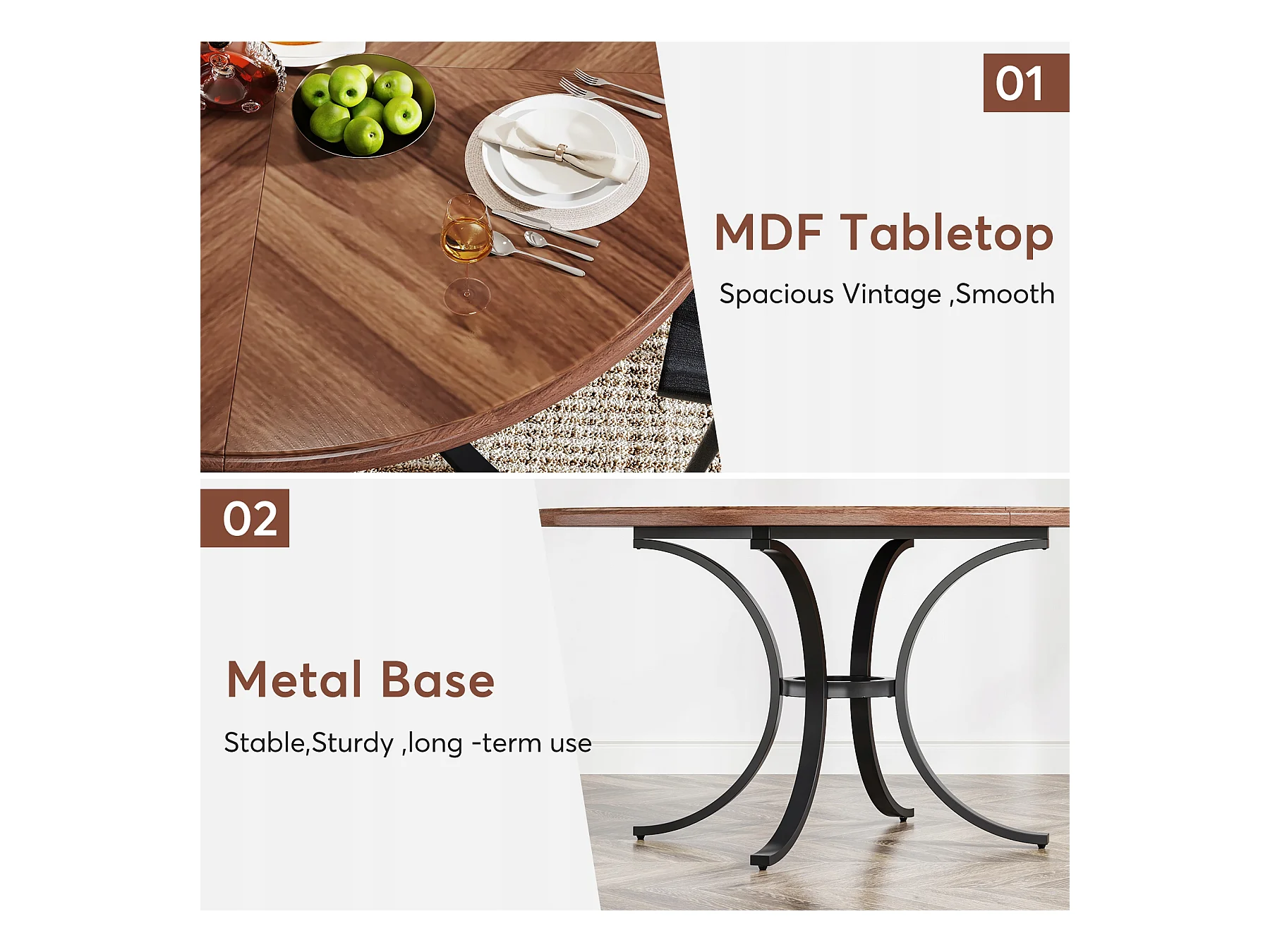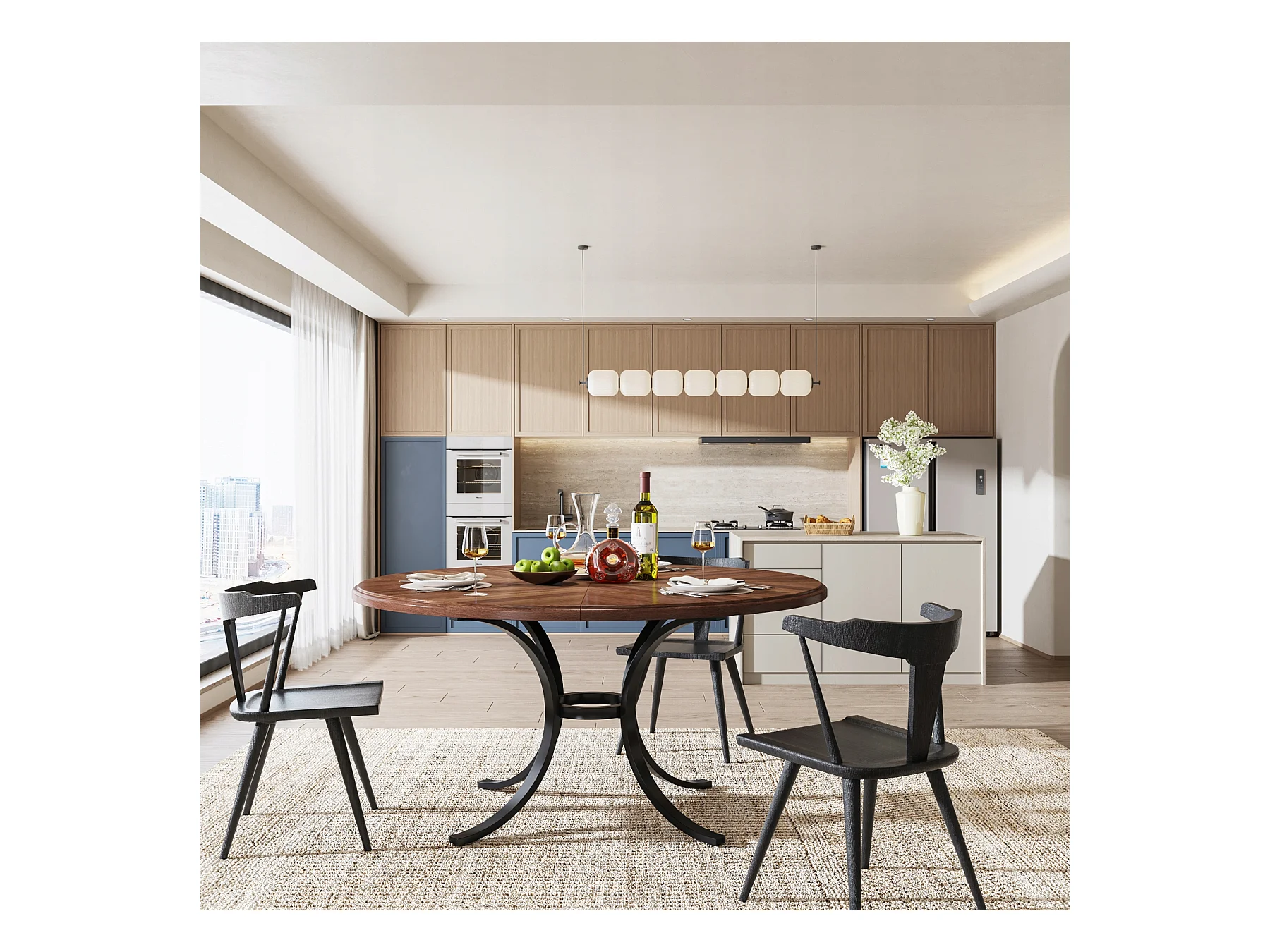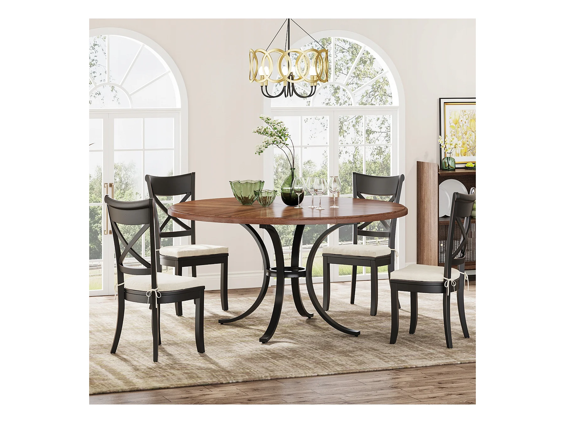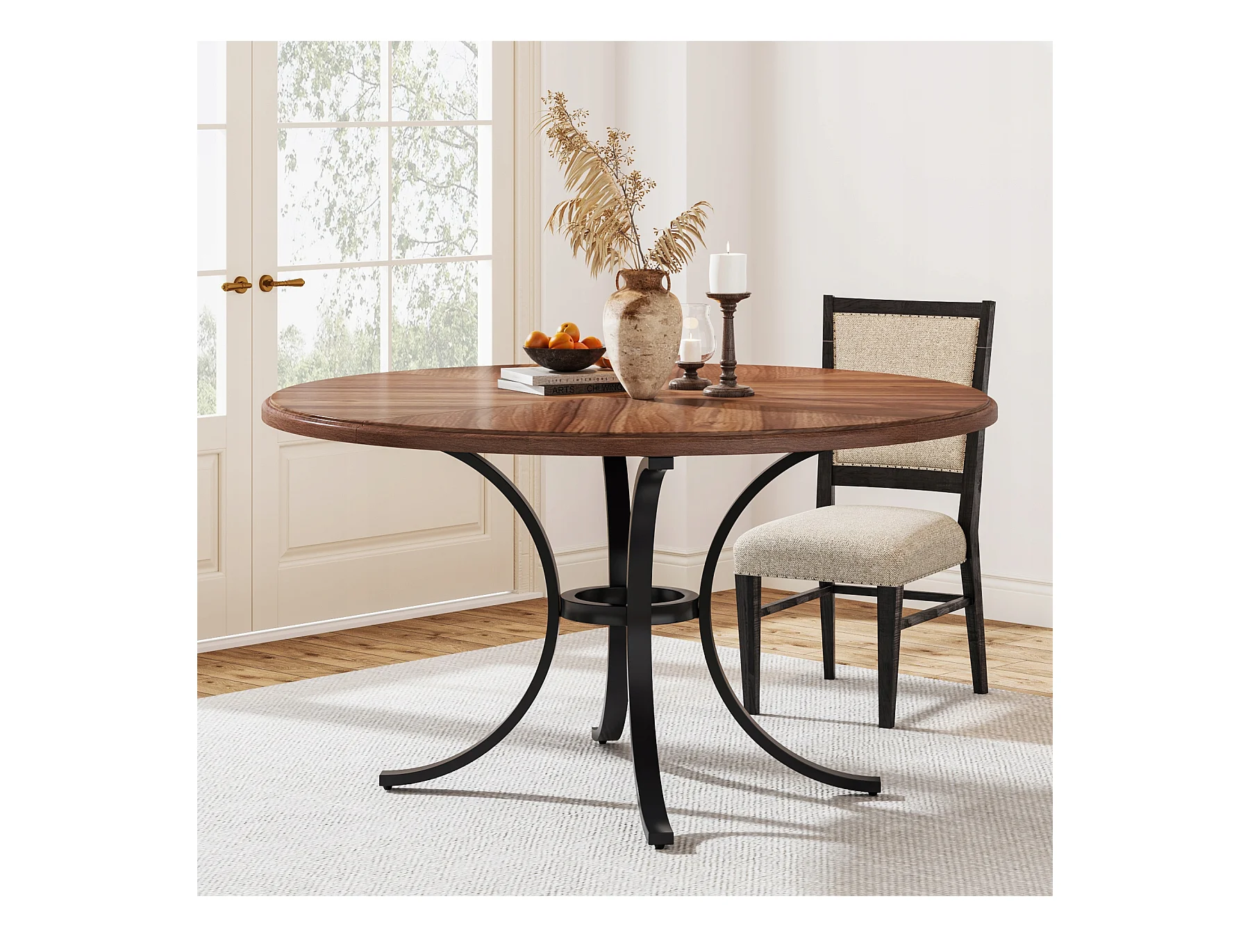 Mesa redonda para jantar para 4 a 6 pessoas - 120 cm - Mesa de cozinha redonda moderna para sala de jantar, sala de estar - Castanho e preto