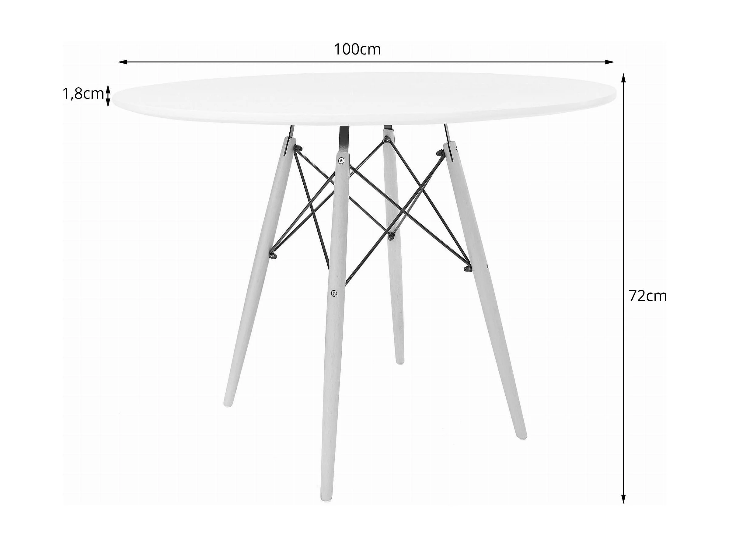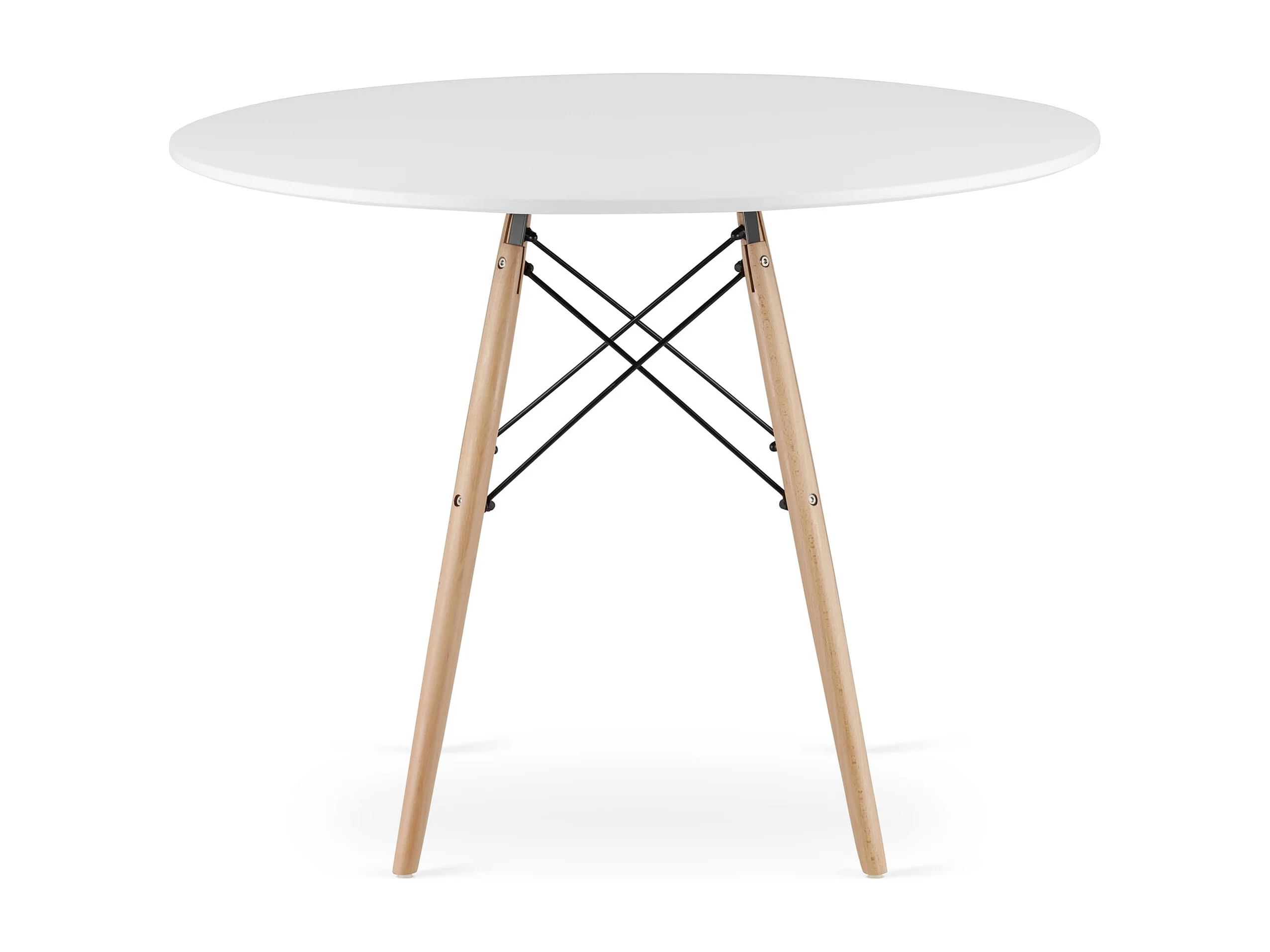 Mesa redonda Valora KOVA em MDF branco com pés em faia.