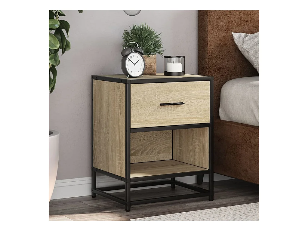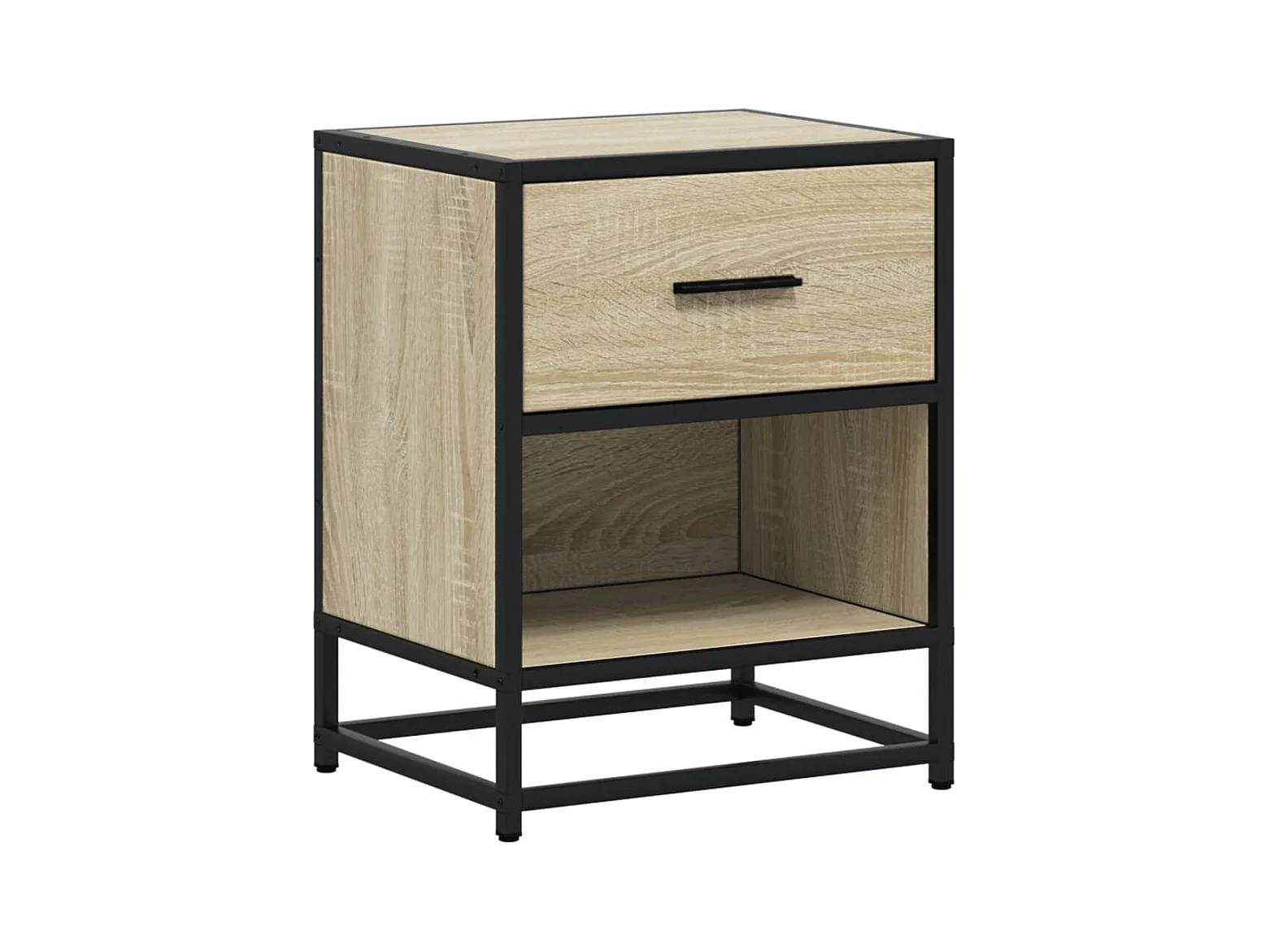 Mesa de cabeceira em carvalho fumado 40x31x50cm madeira e metal