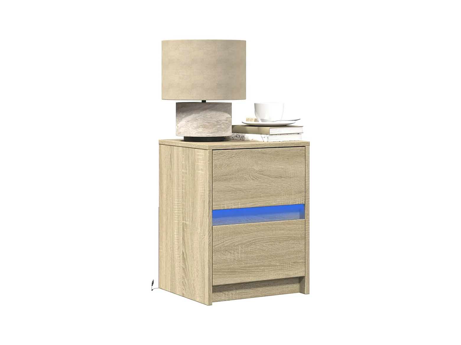 Mesa cabeceira com luzes LED derivados madeira carvalho sonoma