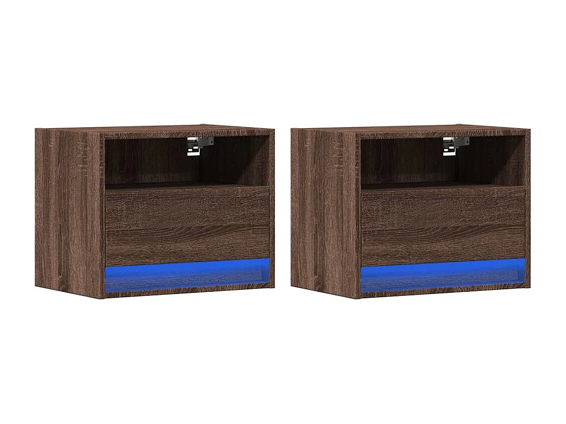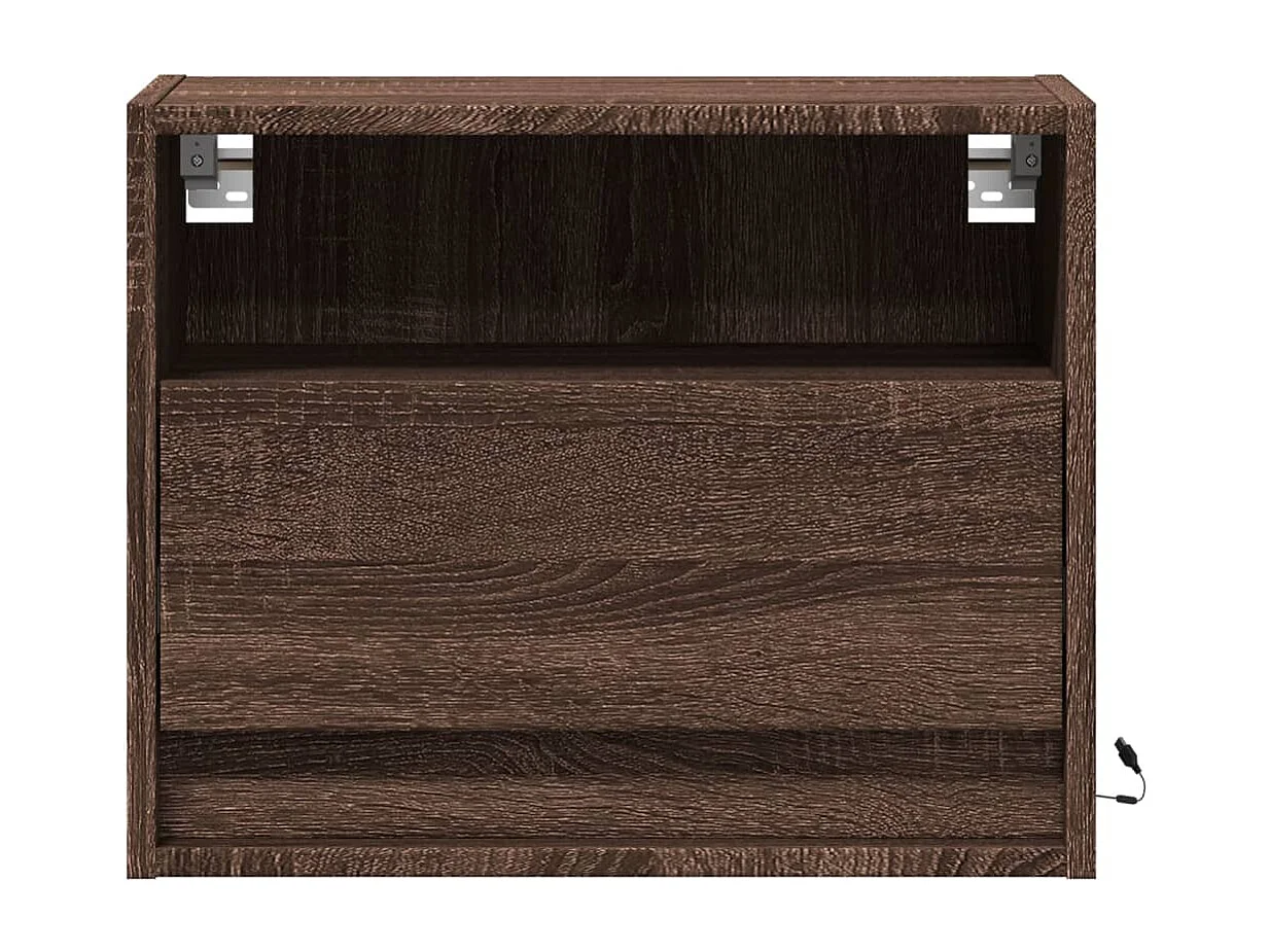 Mesa de cabeceira de parede com luzes LED carvalho castanho