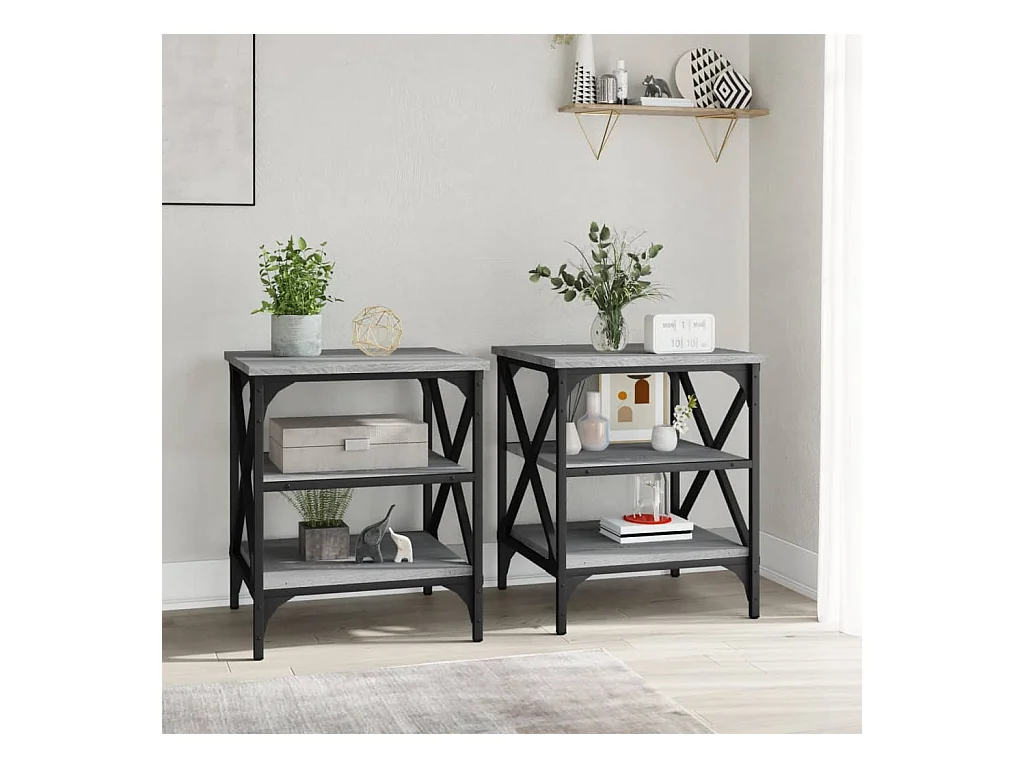 Mesas de apoio 2 pcs 40x42x50 cm derivados madeira cinza sonoma PT377856