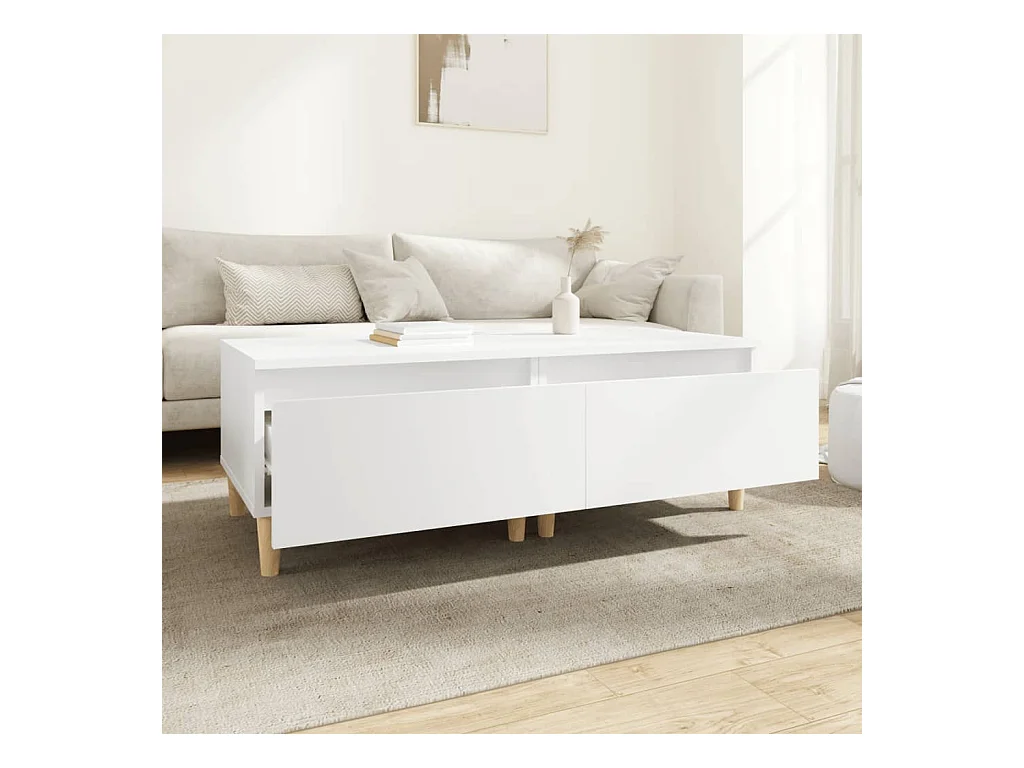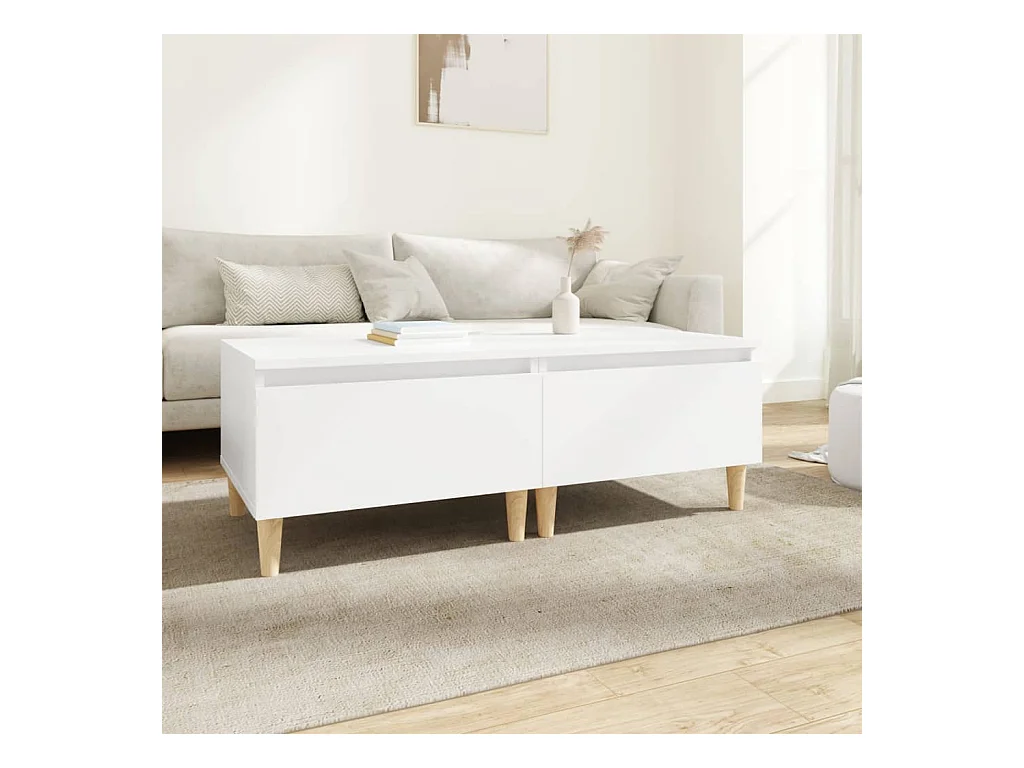 Mesa de centro dourada branca 100x50x35 cm Madeira maciça de pinho