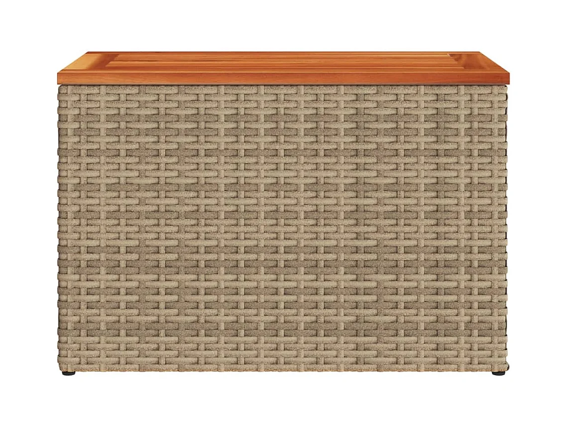 Mesa apoio jardim c/ tampo madeira 100x40x75 cm vime PE bege