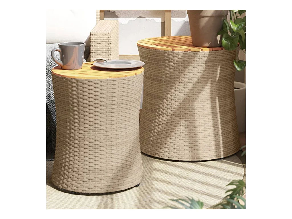 Mesas de apoio p/ jardim c/ tampo de madeira 2peças vime PE bege