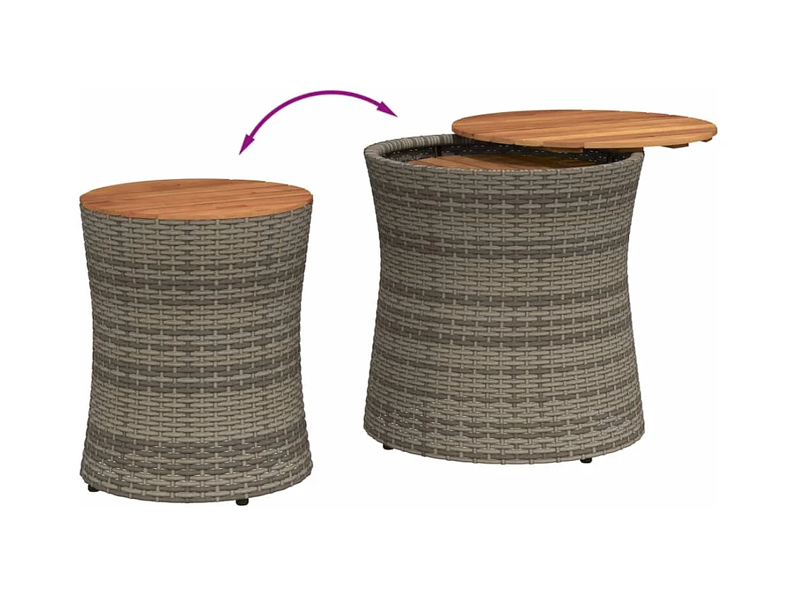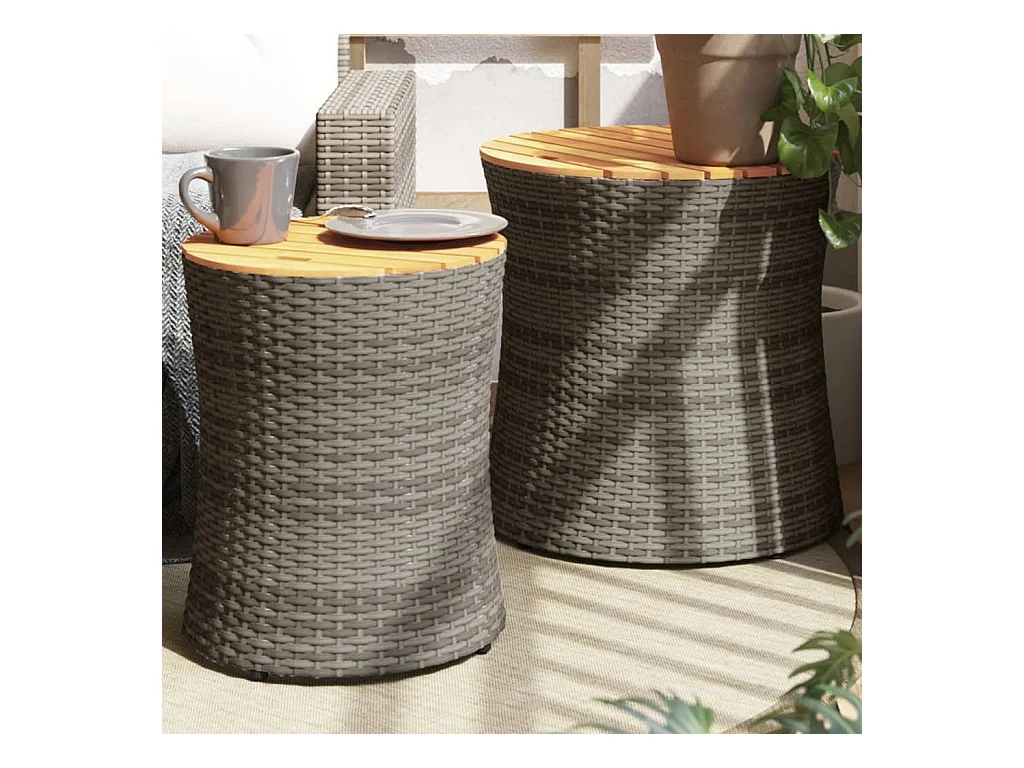 Mesas de apoio p/ jardim c/ tampo de madeira 2peças vime PE cinza