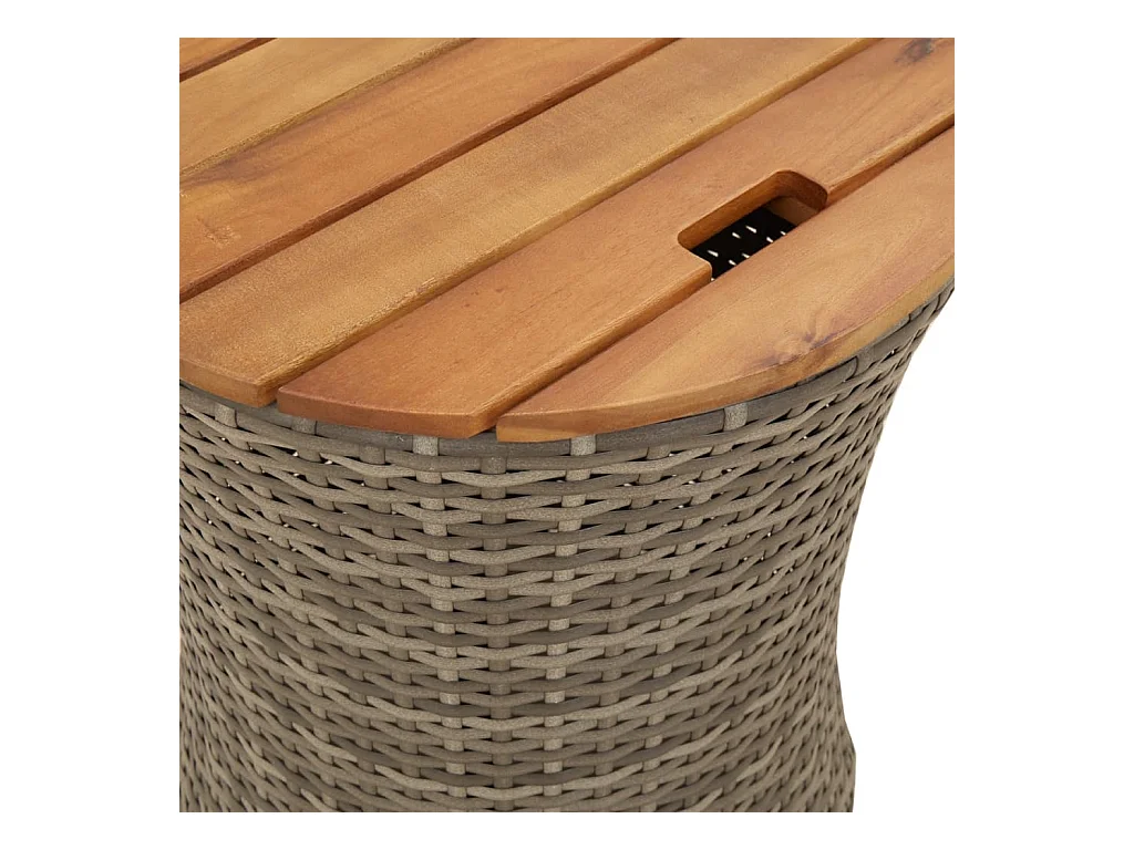 Mesa de apoio formato de djembé vime PE/madeira maciça cinza