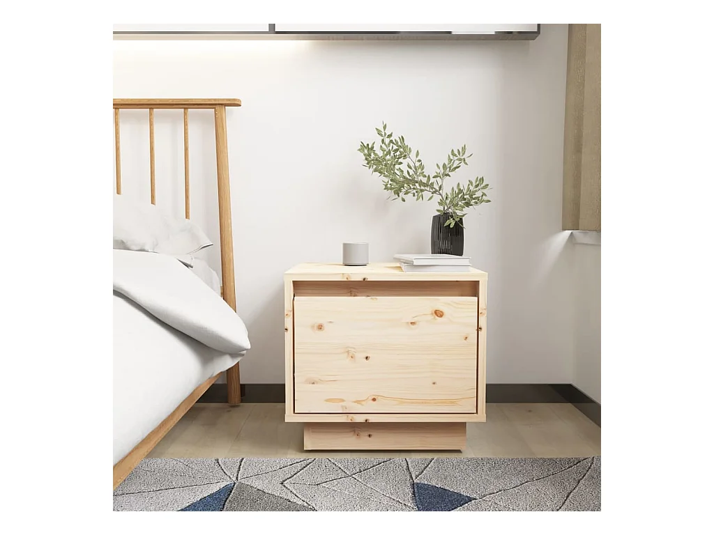 Mesa de cabeceira pinho maciço e vime natural castanho PT71067