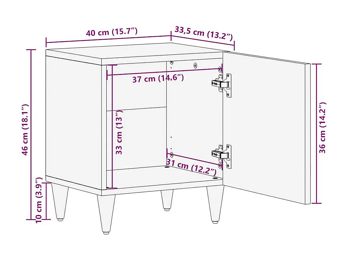 Armário de cabeceira castanho 40x33x46 cm manga madeira maciça