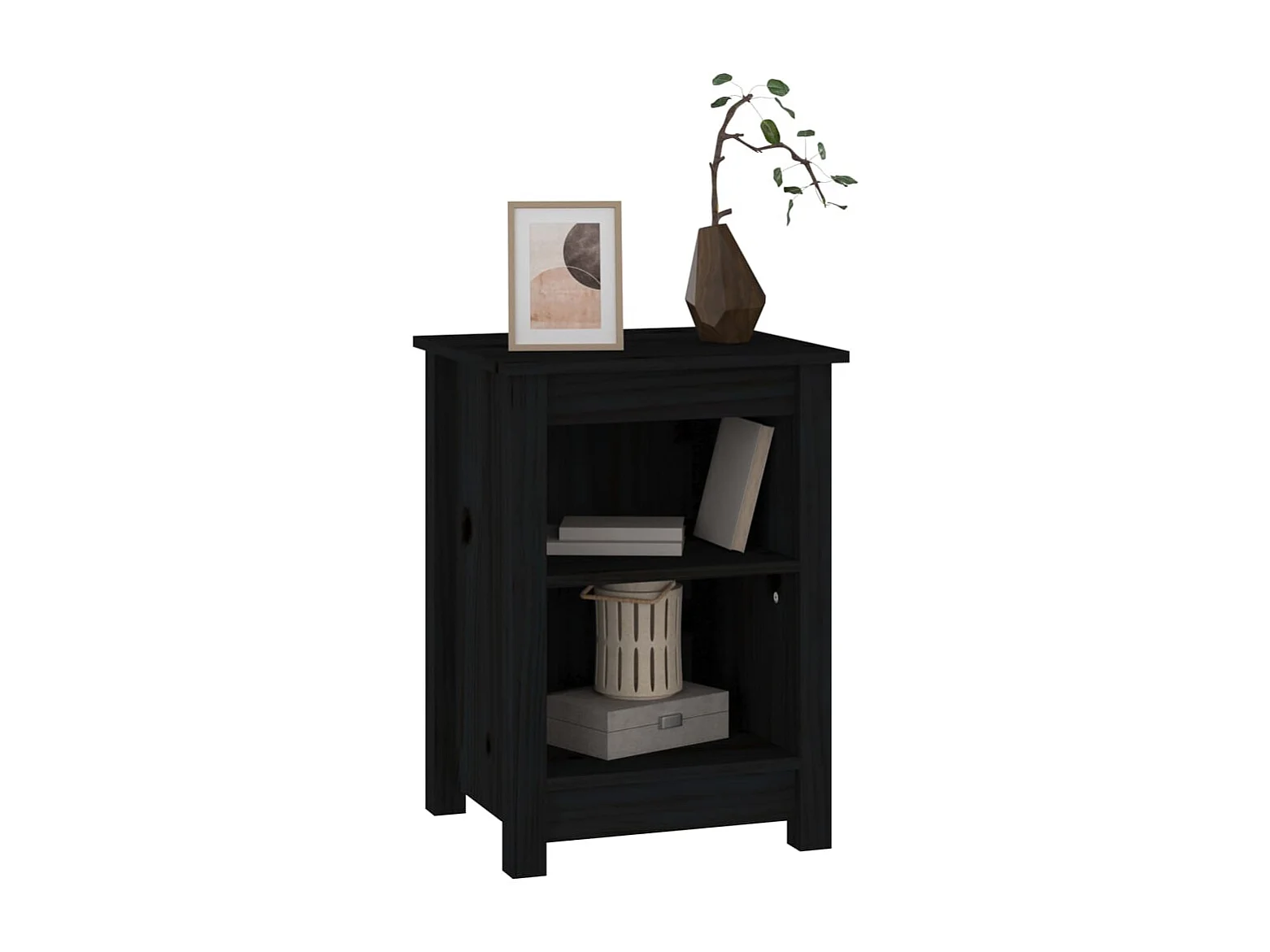 Mesa de cabeceira em madeira preta