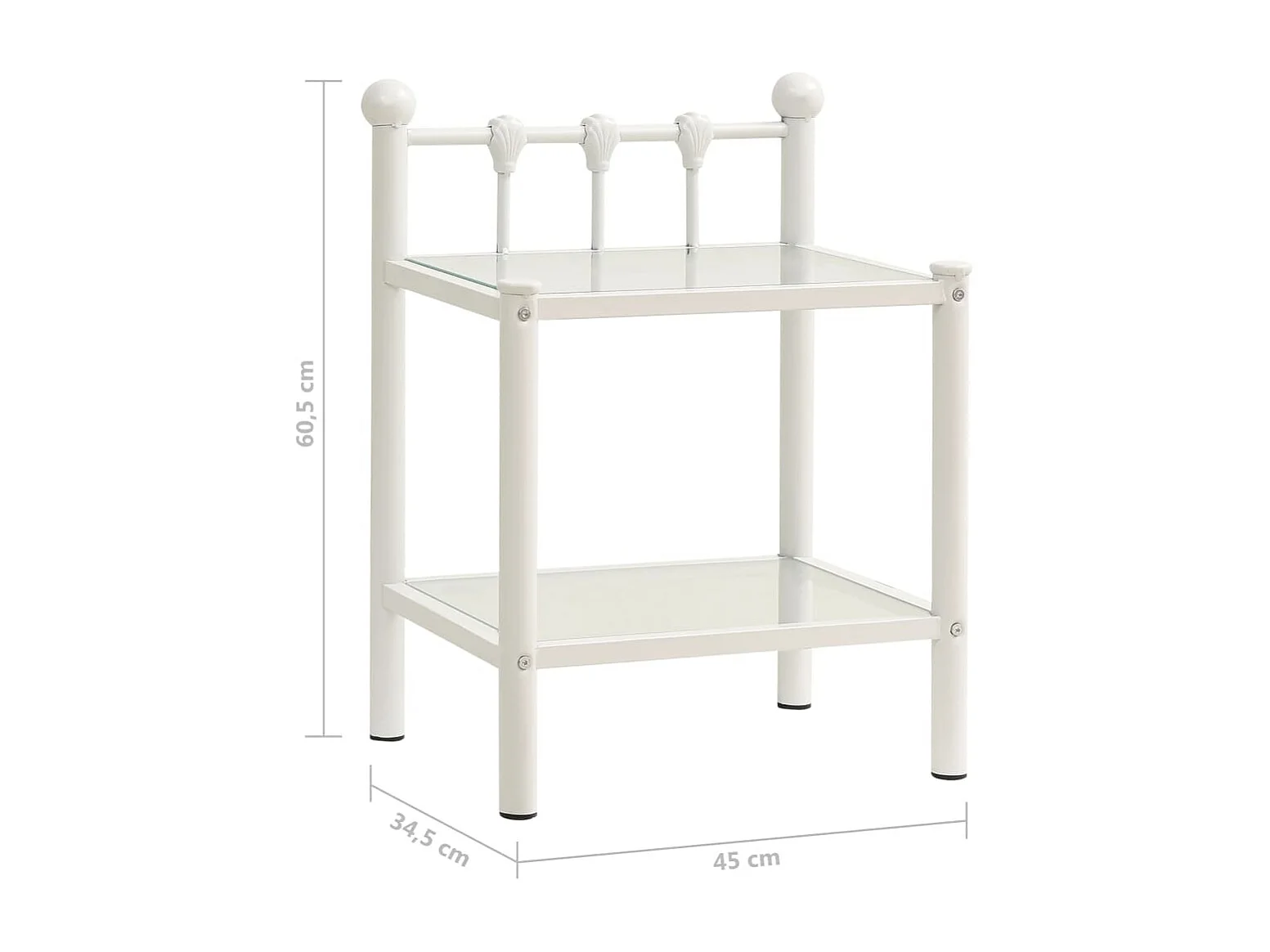 Mesas de cabeceira 2 pcs metal branco e vidro transparente