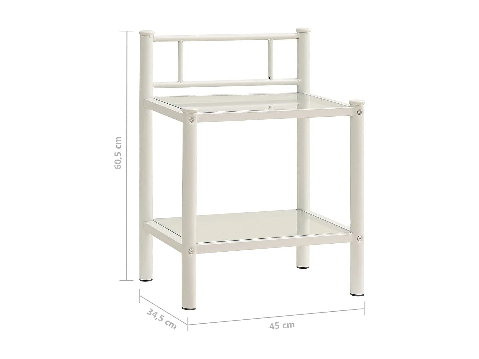 Mesas cabeceira 2 pcs aço e vidro temperado 45x30,5x60cm branco
