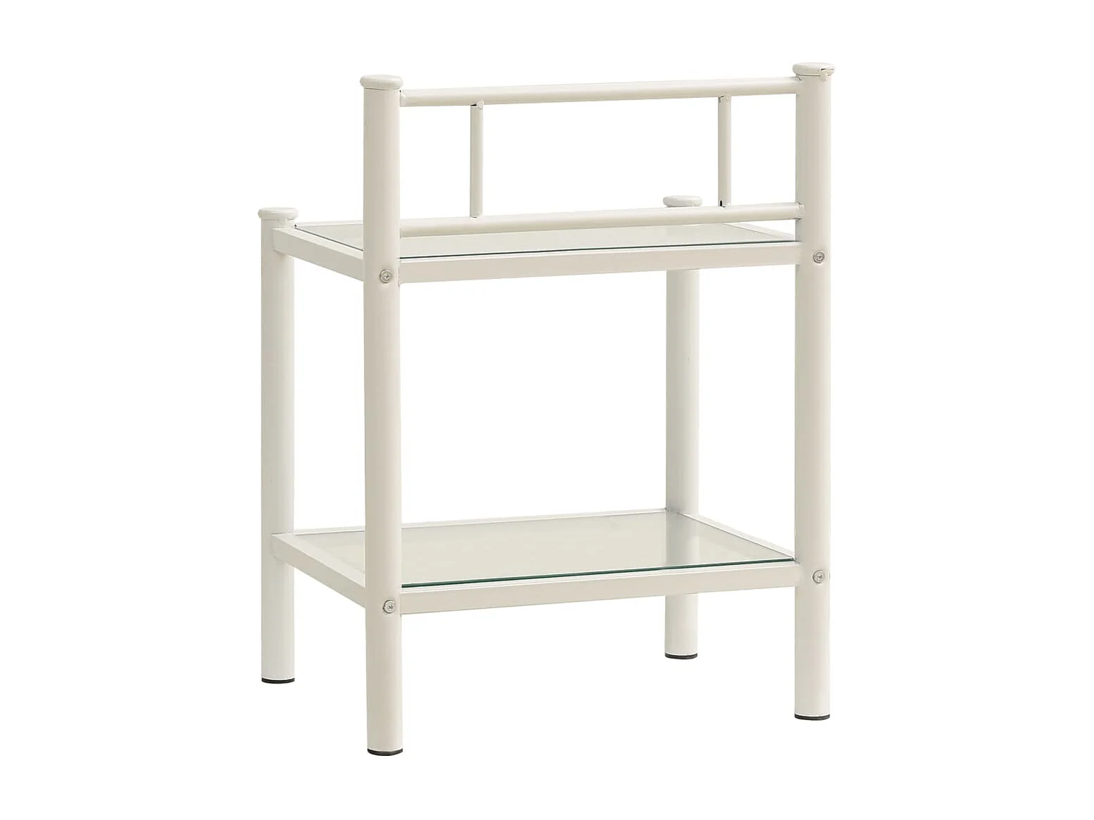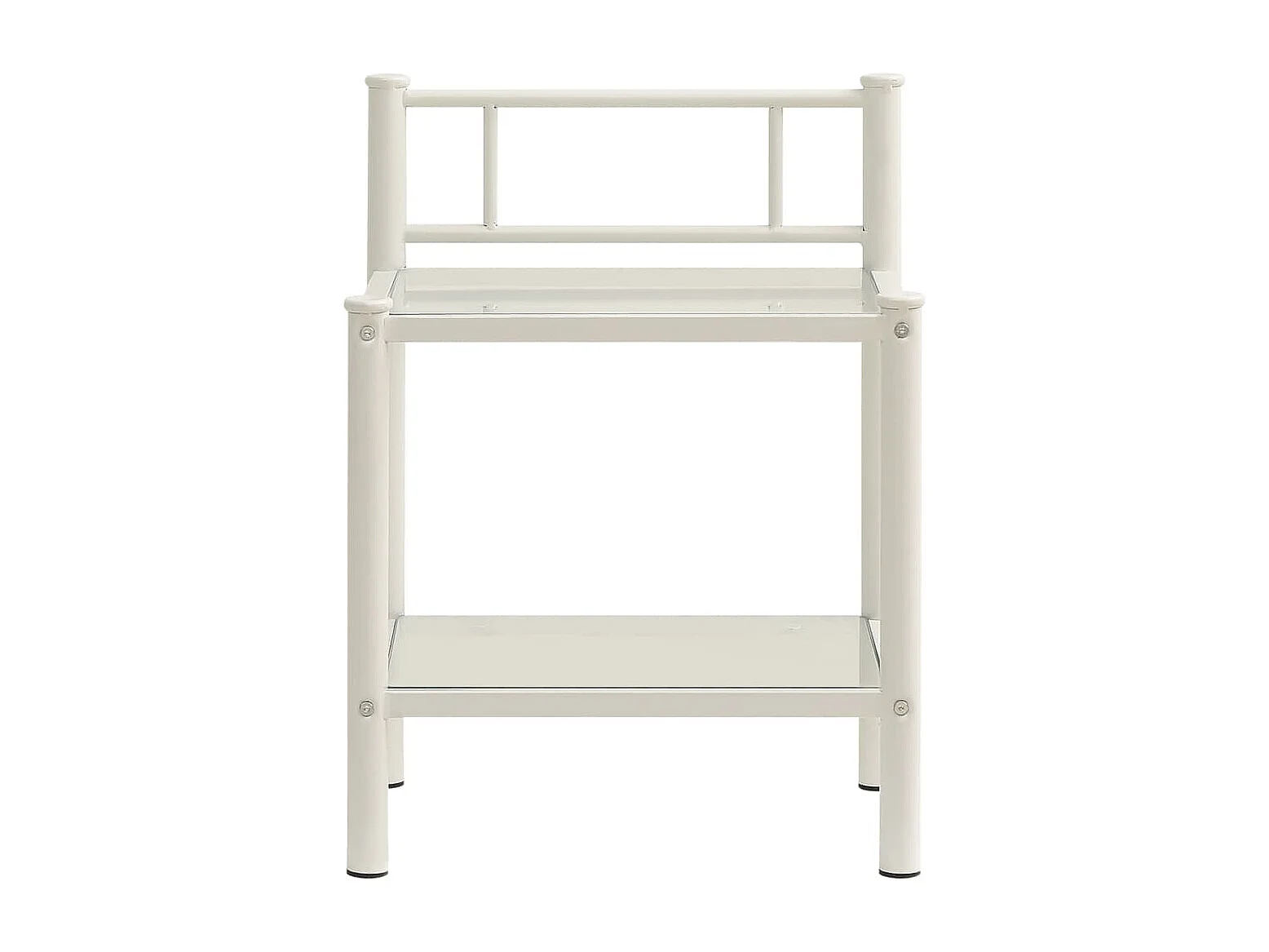 Mesa de Cabeceira Moderna 2 peças metal branco e vidro transparente