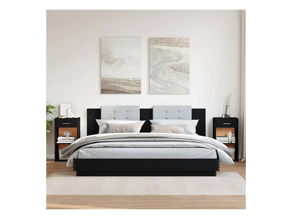Mesas cabeceira com luzes LED 2 peças 38x34x50 cm preto