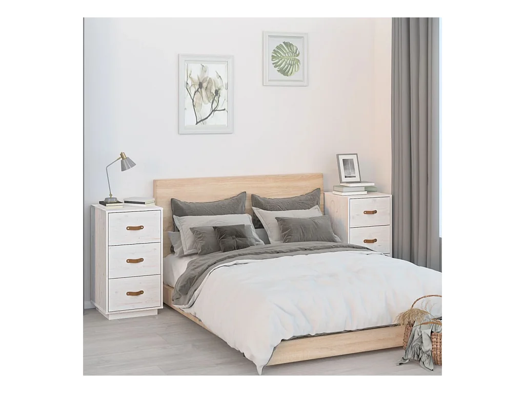Mesas de cabeceira 2 peças branco 40x40x75 cm madeira maciça de pinho