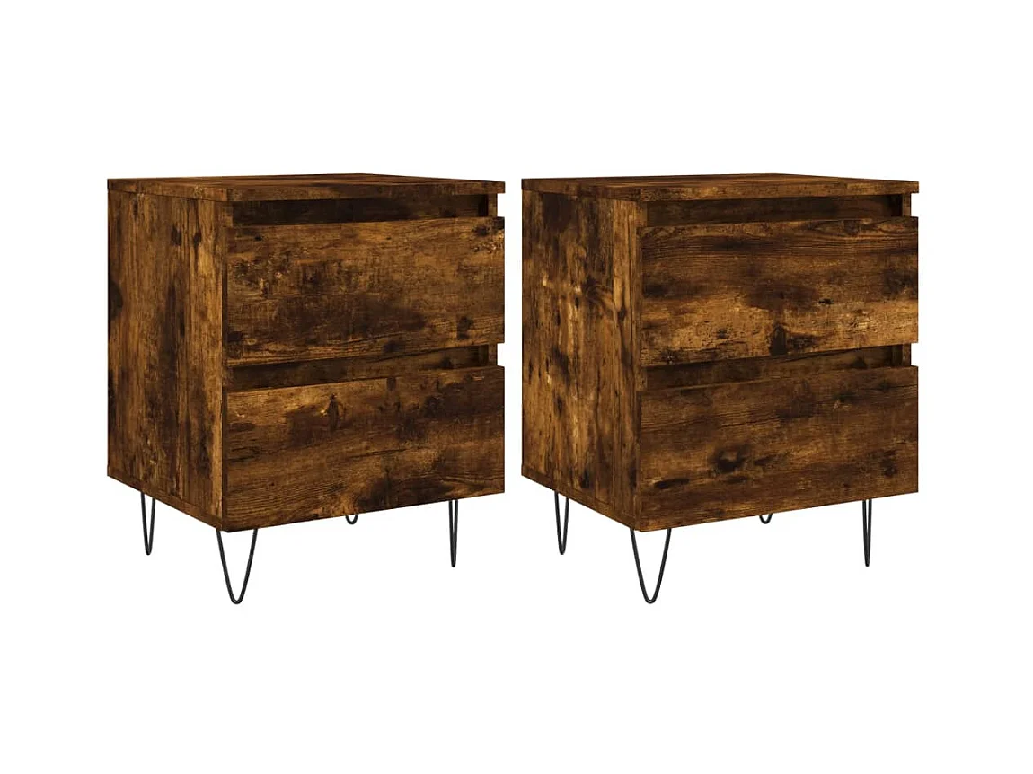 Mesas de cabeceira 2 peças carvalho fumado 40x35x50 cm madeira trabalhada