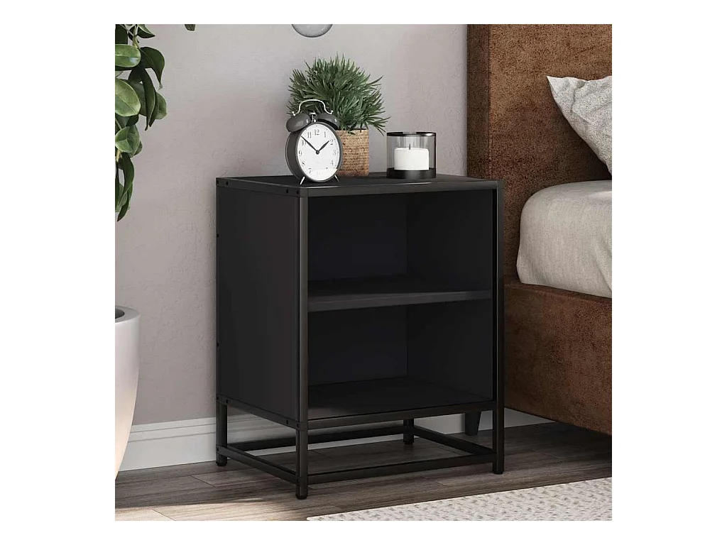 Mesa de cabeceira 40x31x50cm derivados de madeira preto e metal